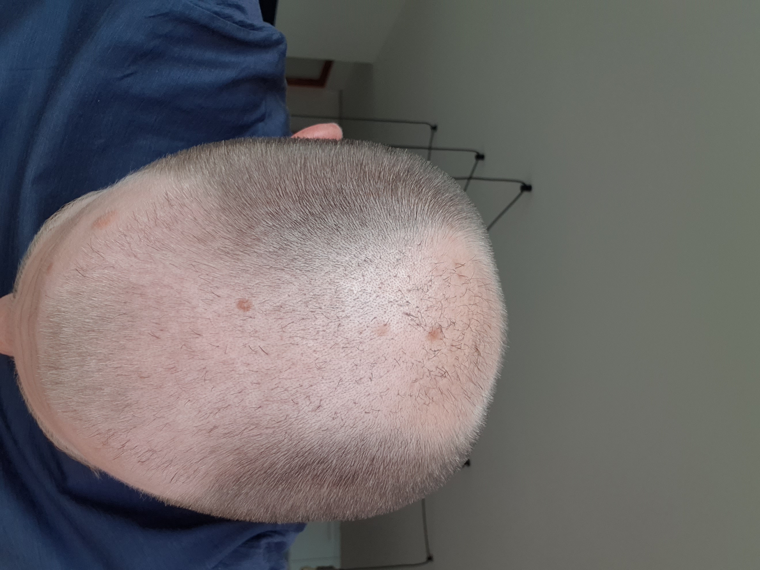 * Ggf. vorangegangene Haartransplantationen (Jahr? Haarchirurg?): Im März 2019 eine Transplantation FUE mit ca. 2.500 Grafts. Ich war zwischenzeitlich mit dem Ergebnis ganz zufrieden, dann kam aber ein erneuter Schub, der evtl./wahrscheinlich im Zusammenhang mit dem Absetzen von Minoxidil steht. Da das ganze in der Vergangenheit liegt und ein etwas sensibles Thema ist, bitte ich euch, euch in euren Antworten darauf zu konzentrieren, was man jetzt mit der gegebenen Situation macht, und nicht darauf, wie ihr die Arbeit einschätzt oder ähnliches.