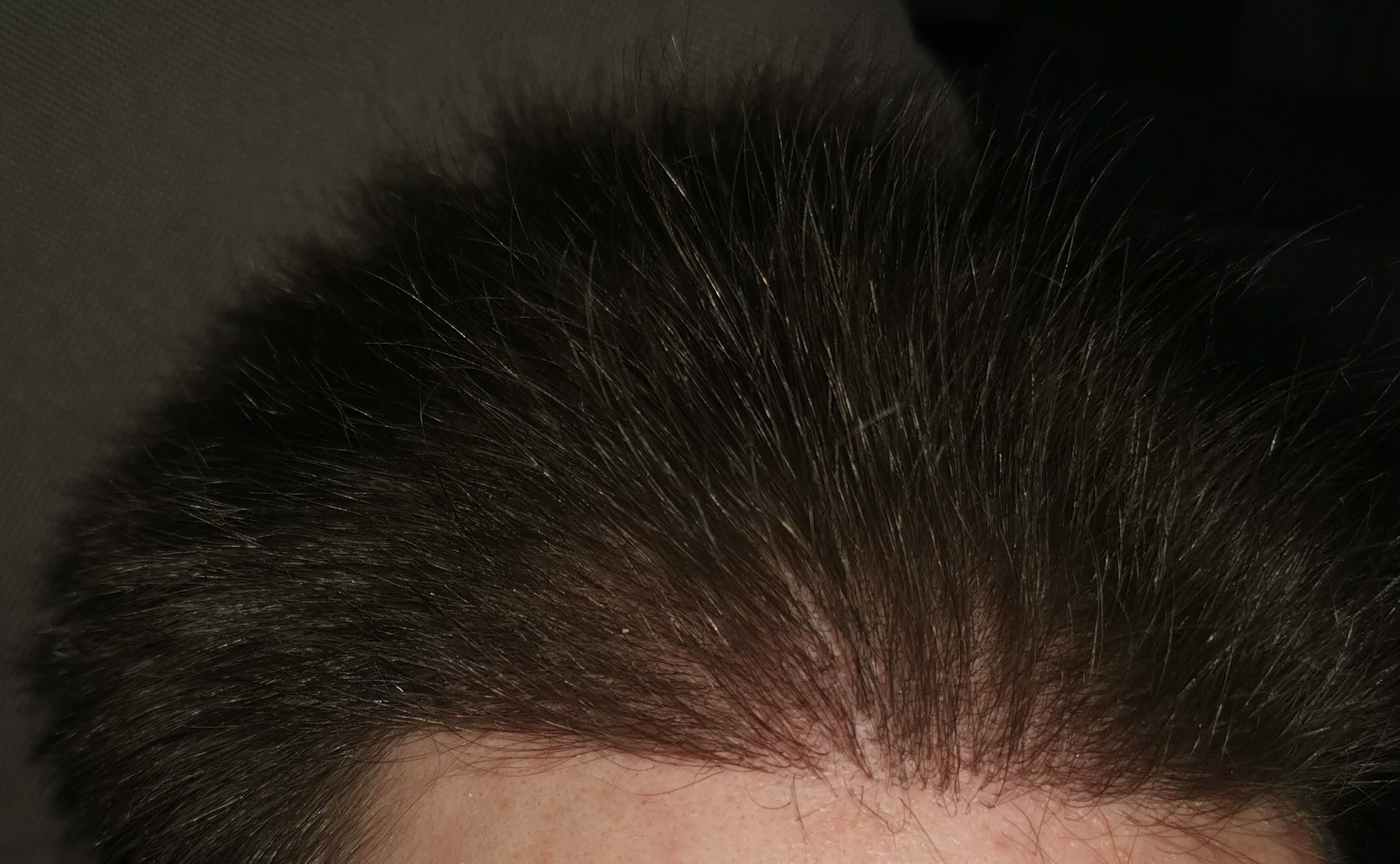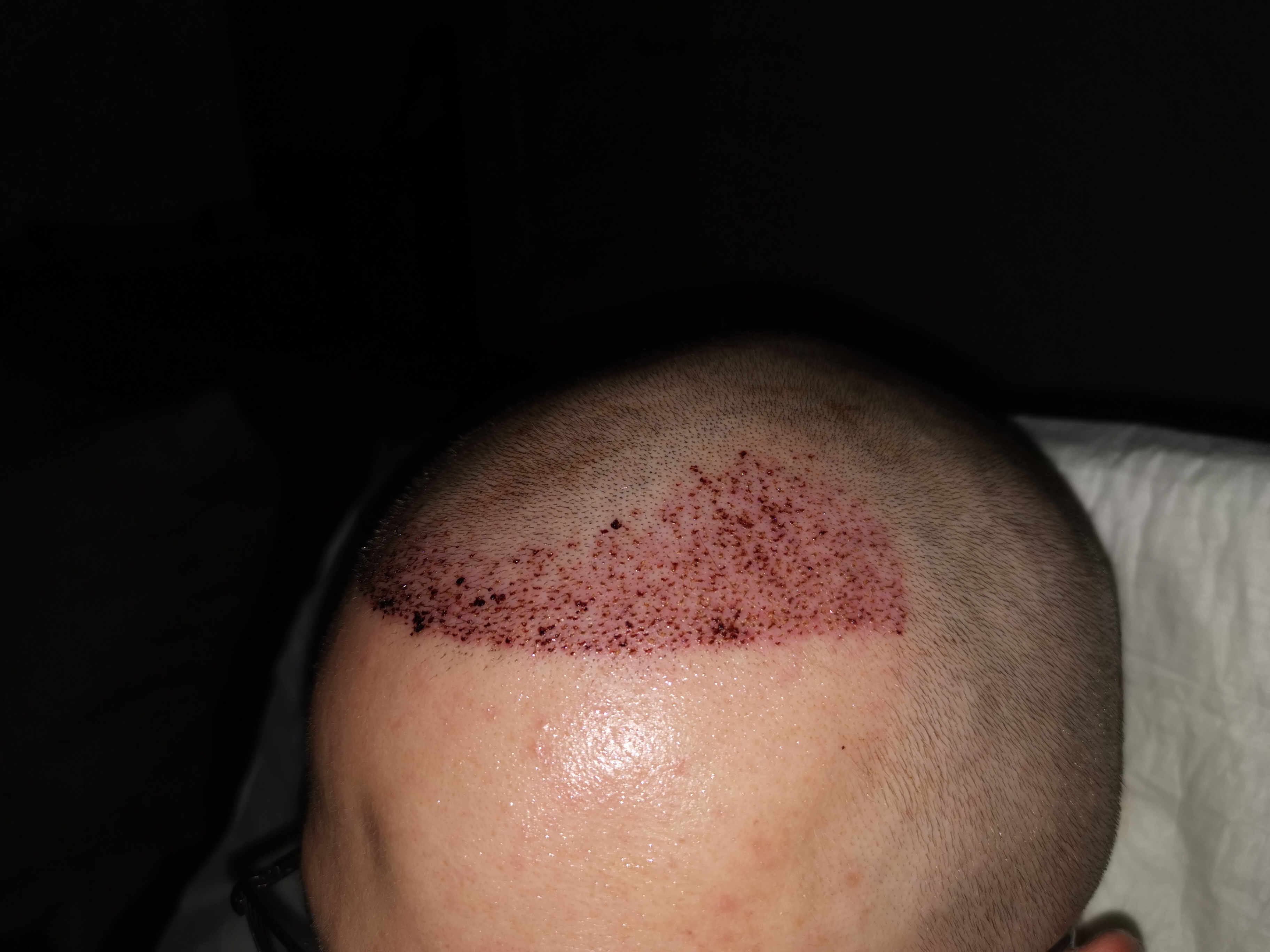 Das sieht nur so licht, weil ich es mit der Handykamera mit Blitz fotografiert habe. Hatte ja auch einen Glatzenschnitt und da sieht man das nicht überall transplantiert wurde