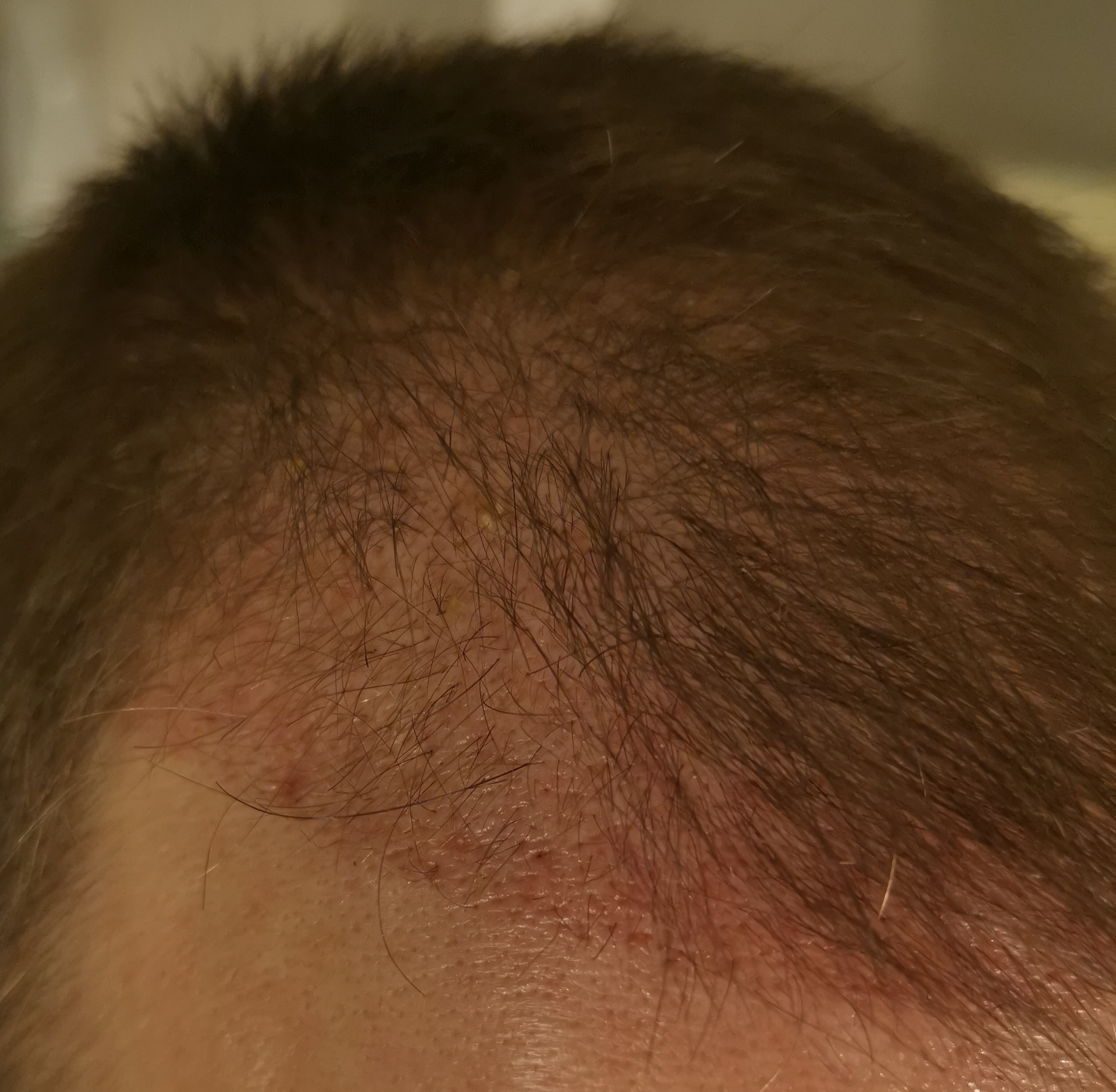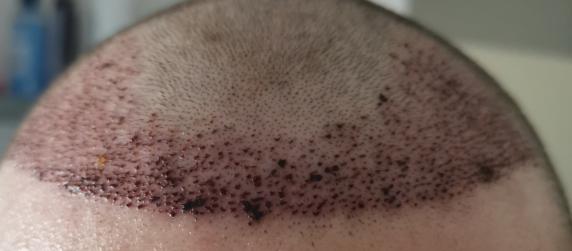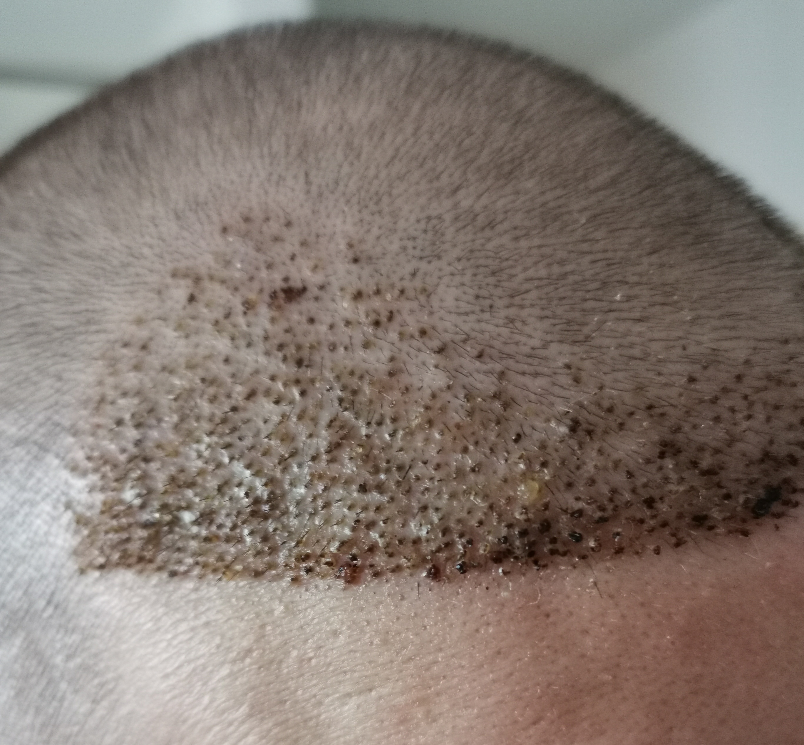 27 Tage Post OP. Langsam fallen die Grafts aus.