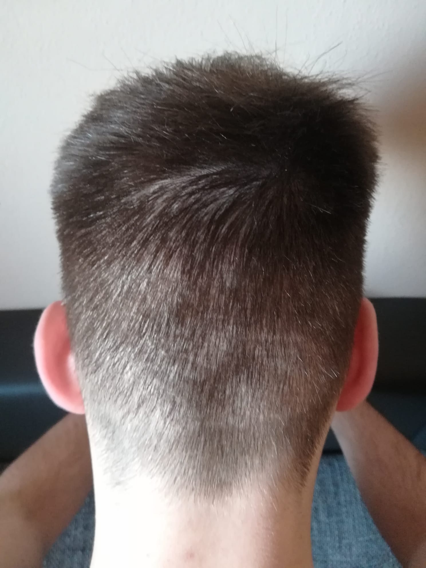 Hier sind ein paar Bilder meiner jetzigen Haarsituation. Wie man darauf sehen kann, war ich vor kurzem beim Friseur. Man kann hier auch sehen, dass der Transplantationsbereich auf der Vorderseite sich prächtig entwickelt hat. Und vom Spenderbereich sieht man nichts mehr davon, dass hier Haare entnommen worden sind. Es ist alles wirklich gut verheilt.