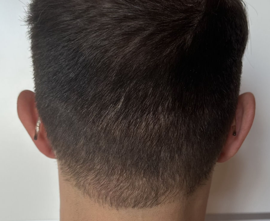 Das Review schreibe ich gut ein Jahr nach der Transplantation mit dem endgültigen Resultat. Ich bin super zufrieden. Die Haarlinie finde ich perfekt: es sieht überhaupt nicht unnatürlich aus (hatte bei vielen anderen Kliniken den Eindruck, dass die Haarlinie zu gerade und unnatürlich aussieht). Der transplantierte Bereich ist sehr dicht. Ich kann jegliche Frisur tragen und muss mir keine Sorge machen, dass ich durch Wind oder Regen "entblößt" werde. Für mich auch wichtig, da ich Seiten und Hinten meist kurz trage: man sieht von den Narben im Spenderbereich kaum etwas und selbst bei 1mm fällt eigentlich nichts auf (siehe Fotos, hier ist die Länge des Senderbereichs etwa 4mm).
