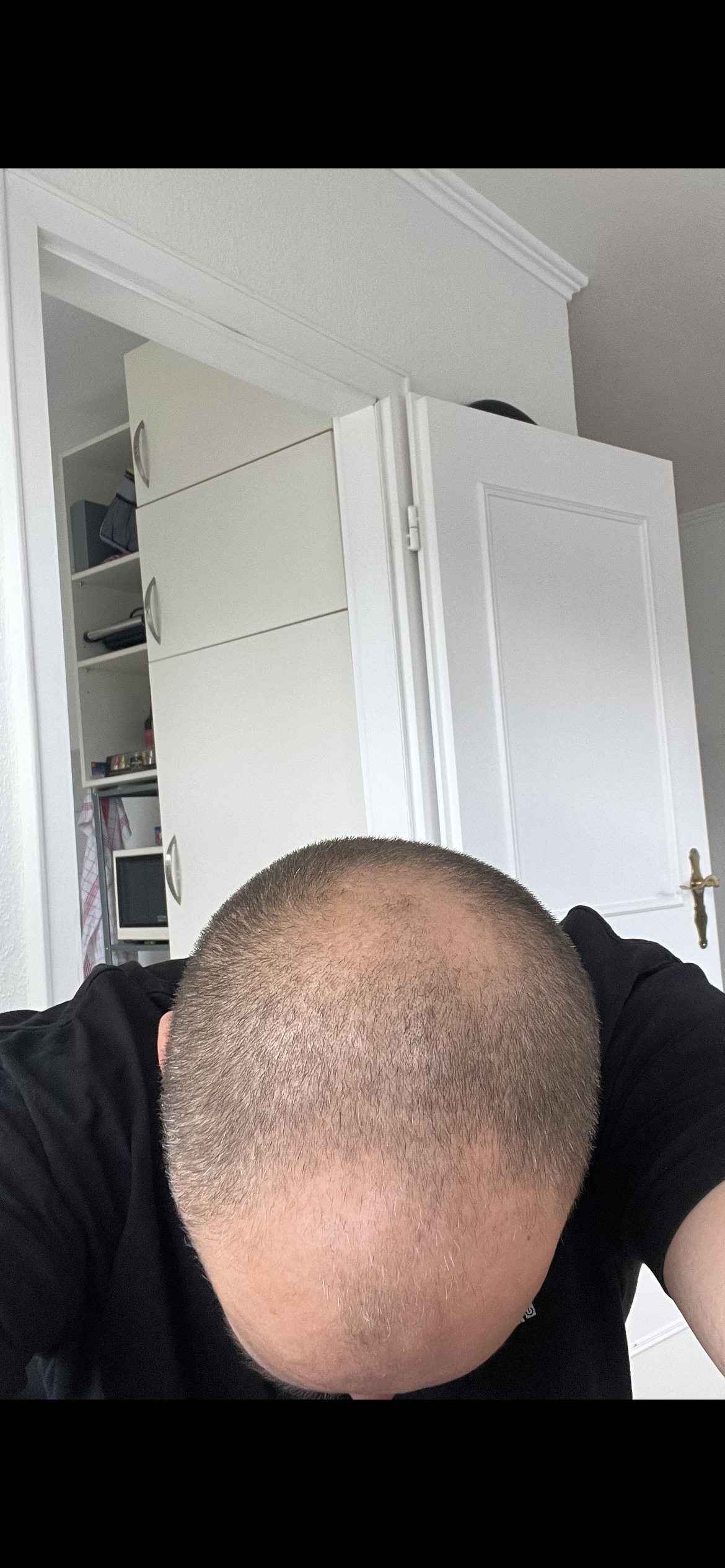 Die Haare sind nun 10 Tage gewachsen und wandern morgen in den Müll, da ich die Optik schrecklich finde und täglich mit Cap rumlaufe.