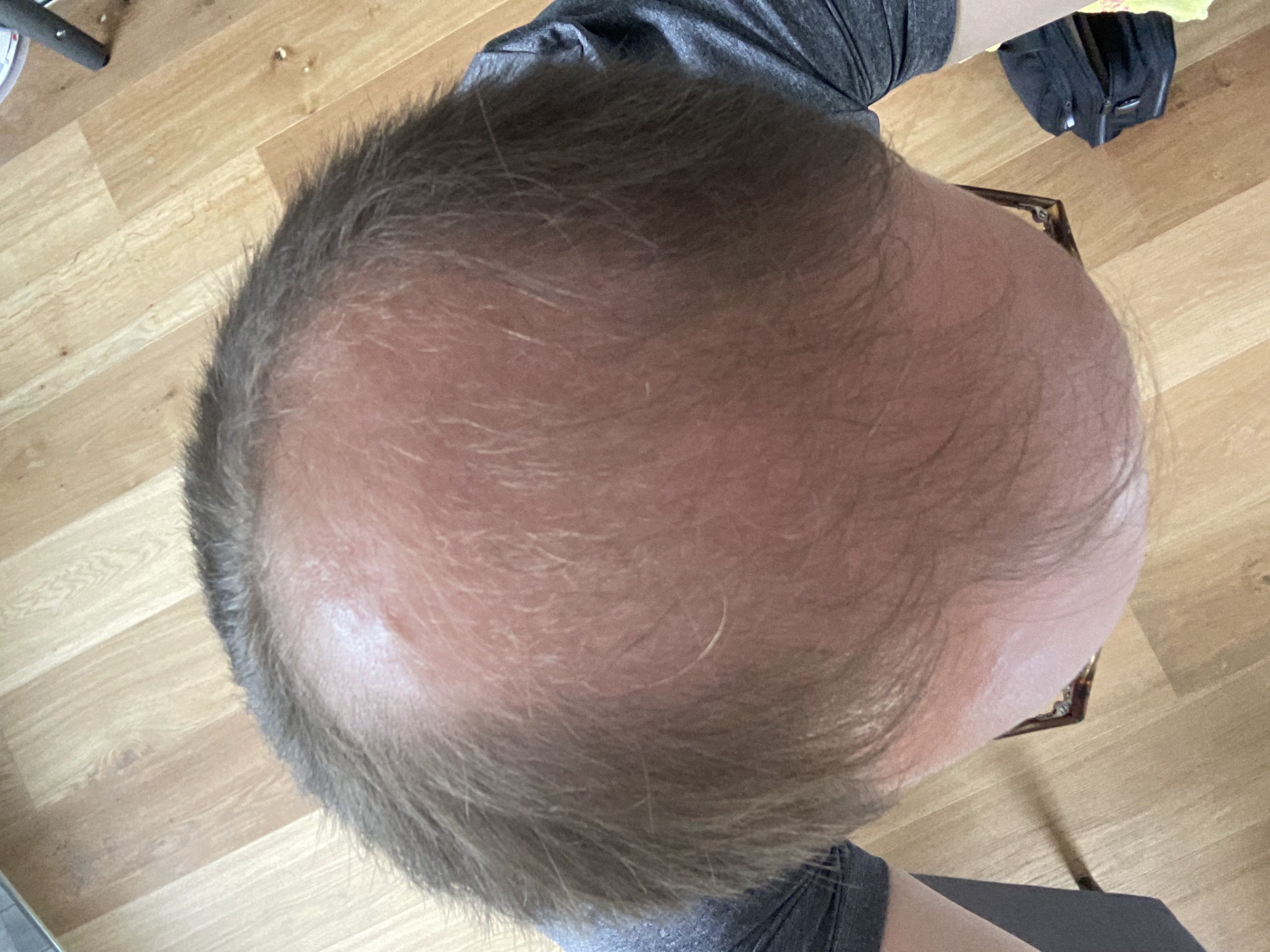 * Haarstatus in der Familie (Eltern/Großeltern): Vater NW 6, Mutter kein Haarausfall, Großväter nicht bekannt