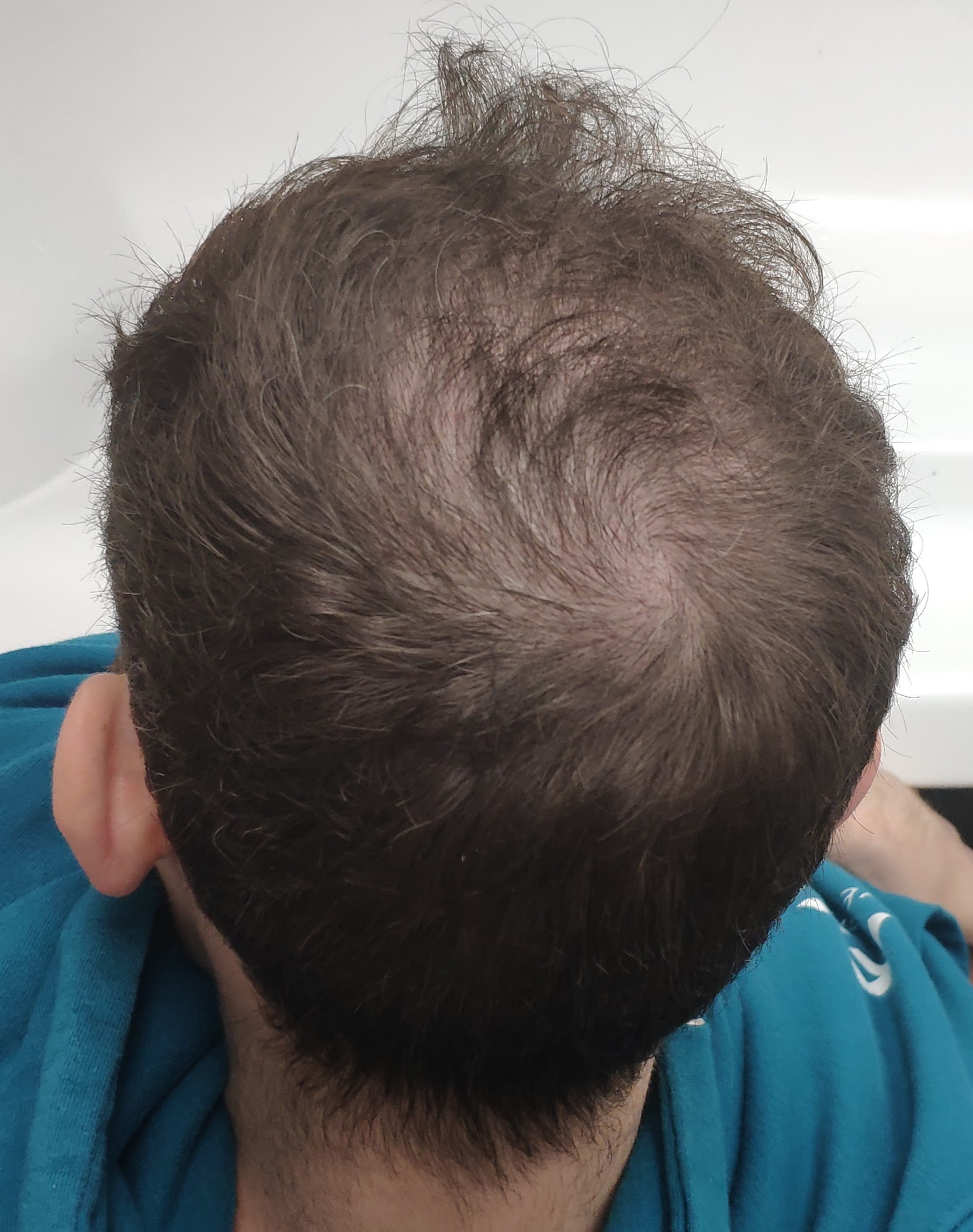 Wenn du mittelfristig dran bleibst, könnte Minox Foam 1x täglich eine Überlegung wert sein. Außerdem wirken deine Haare auf den Bildern oft etwas ölig/fettig. Evtl. Sebo-AGA. Könntest optisch durch Ketozolin 2% 1-2 mal wöchentlich (gut einwirken lassen) vielleicht auch noch etwas rausholen.