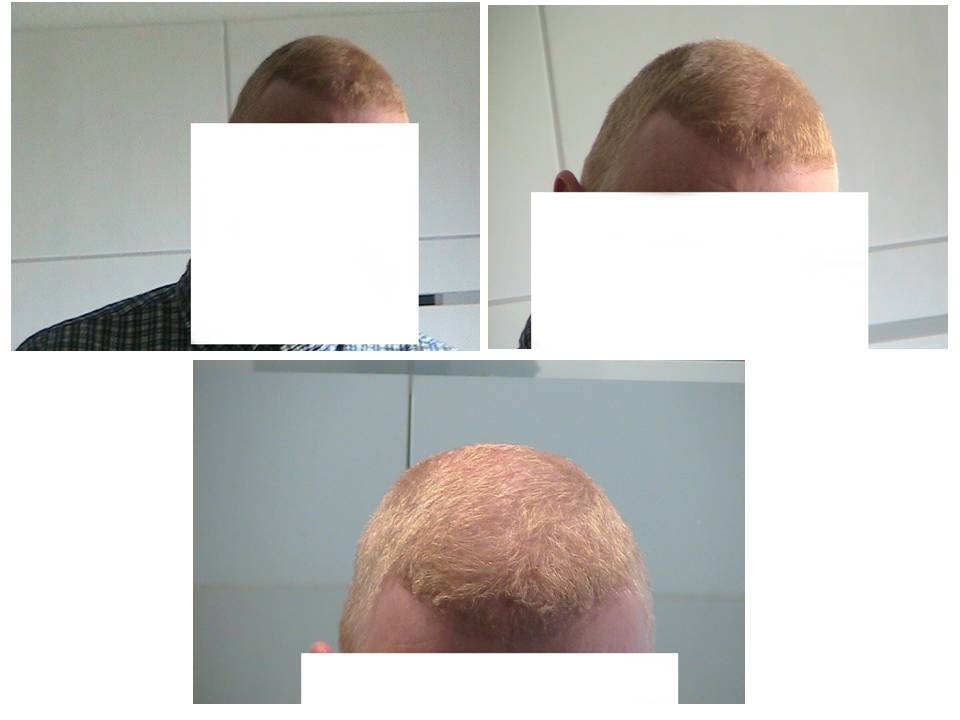 Das deutsche Ergebnis war nicht zufriedenstellend: viel zu geringe Haardichte und sichtbarer Haaransatz, vgl. Bilder. Darüber hinaus wurden bei den ersten beiden Operationen kreisrunde Transplantate von ca. 4mm Durchmesser entnommen und die Löcher nicht zugenäht, obwohl dies von anderen Anbietern zu der Zeit schon gemacht wurde. Bei den nachfolgenden Operationen wurde jeweils ein Strip entnommen, so dass z. T. kreisrunde Löcher von zuvor „zusammenliefen". Das ergab auch am Hinterkopf eine nicht zufriedenstellende Situation.