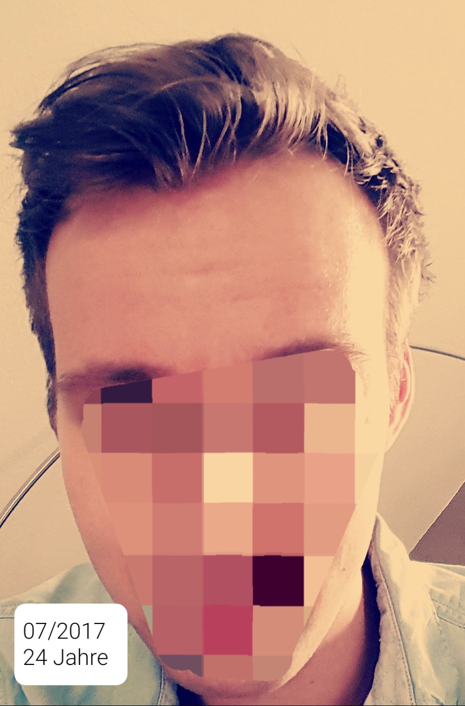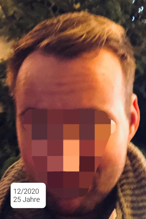 * Haarstatus in der Familie (Eltern/Großeltern): Vater volles Haar, Großvater Mutter 7, Großvater Vater verstorben (4-5 auf den letzten Bildern)