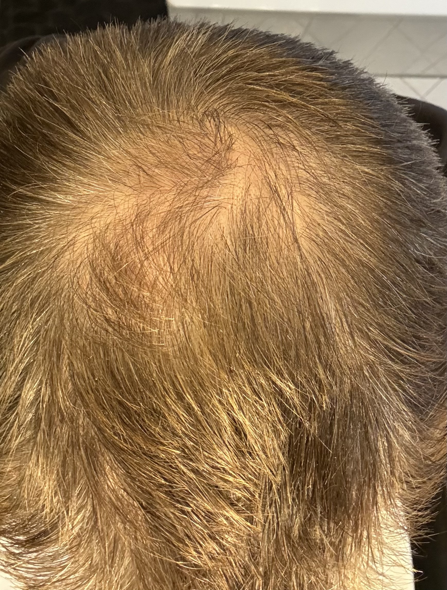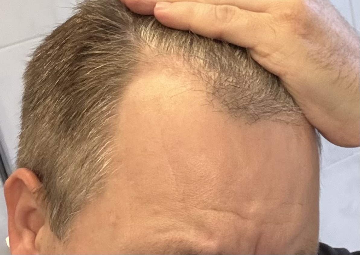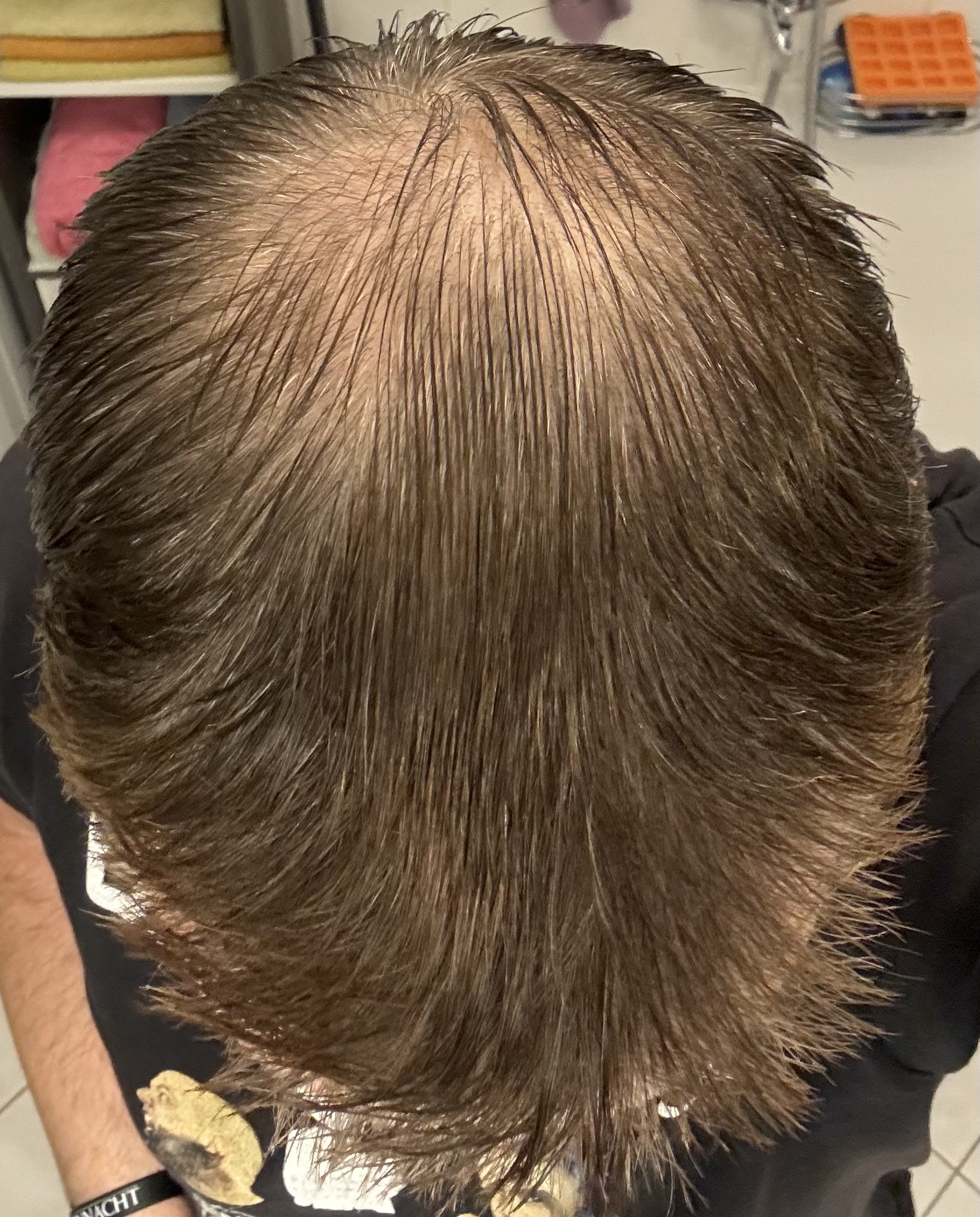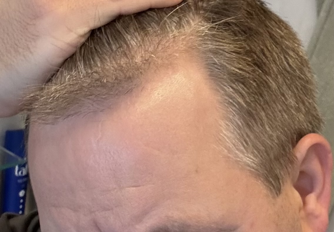 Ich denke das ich damit gut gefahren bin, es hat sich in den Jahren kaum merklich verschlechtert. Habe natürlich nicht immer so genau den Status verfolgt. Auf älteren Fotos sieht man aber schon meist die lichte Stelle am Oberkopf.