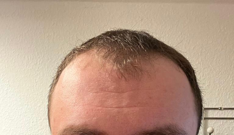 Da Tonsur nicht ganz offen ist, hat Sie vorgeschlagen erst die Geheimratsecken zu decken. Nach ein paar Jahren schauen wir weiter wie es