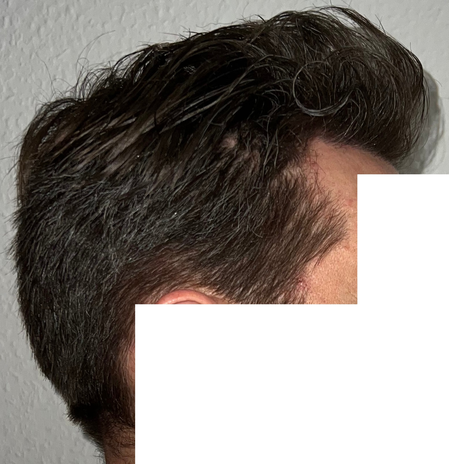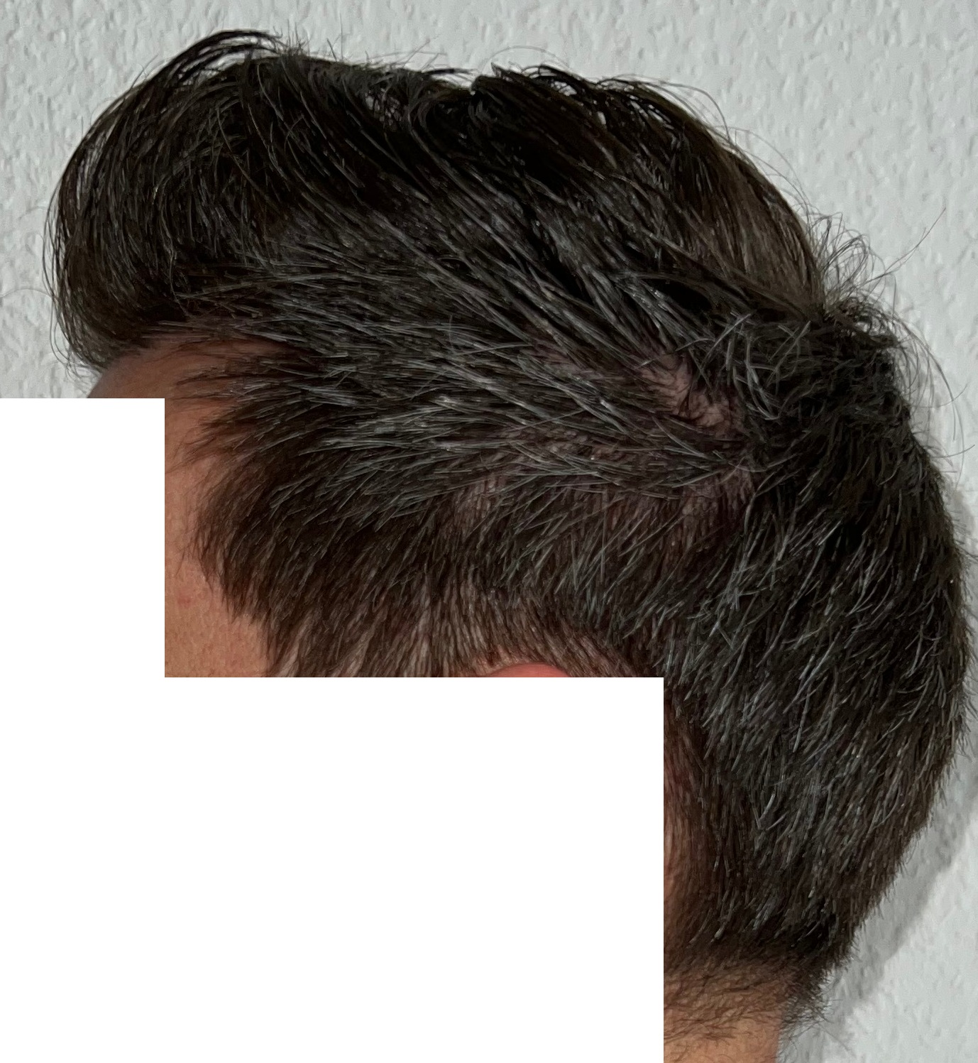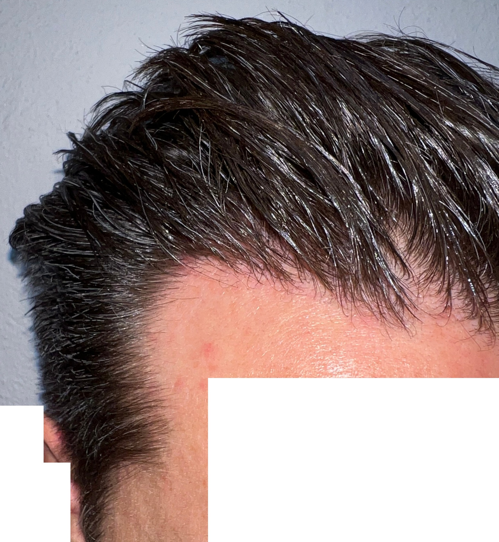 Ja, die Seiten bei dir sind vom fortgeschrittenen Haarausfall betroffen und zurückgewichen. Daher ist ja deine konservative Haarlinie auch vernünftig von Dr. Feriduni gesetzt worden. Alles andere wäre auch unvorteilhaft gewesen, vor allem wenn das Schläfendreieck komplett weg ist.