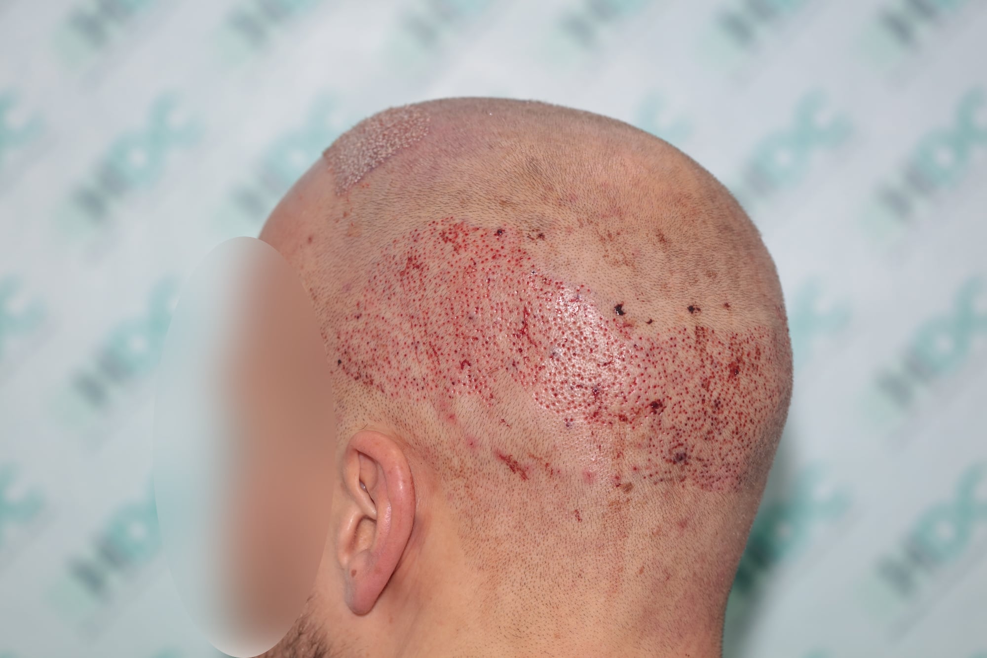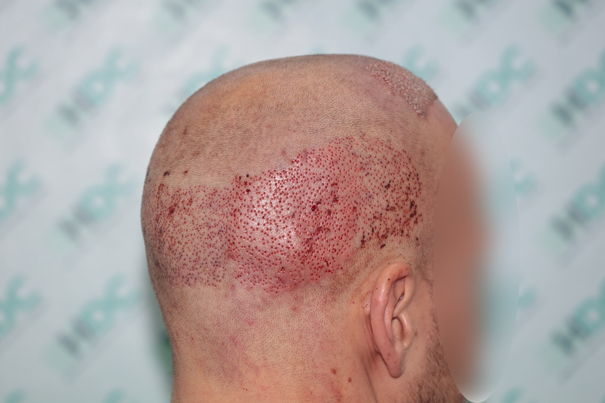 Ich hatte eine Woche ungefähr mit starken Schwellungen am Kopf zu kämpfen, da ich auch mehr Betäubung benötigte. HDC verteilt keine "Headbands" o.ä., sodass die Schwellung natürlich abgebaut werden kann. Ansonsten verheilt aktuell alles wundervoll, ich habe auch keine Krusten o.ä. mehr am Kopf.