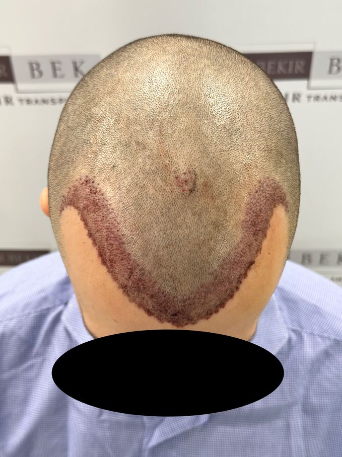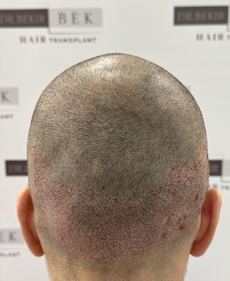 Ich hatte drei Hauptsitzungen zur Extraktion und Implantation, aufgeteilt auf eineinhalb Tage, mit kleinen Pausen dazwischen. Für die Extraktion wurde ein motorisiertes Werkzeug verwendet, um um das Transplantat herum zu schneiden, danach riss der Arzt das Transplantat mit einer Pinzette heraus. Für die Implantation verwendete er die manuelle „Stick and Place“-Methode. Während des gesamten Eingriffs hatte ich das Gefühl, dass Dr. Bekir sehr konzentriert, geduldig und engagiert war. Er benutzte ein Mikroskop und hatte ein leichtes, aber präzises Gespür. Soweit ich das beurteilen kann, verheilen die implantierten und gespendeten Bereiche sauber, die postoperativen Bilder sehen sauber aus und die implantierte Dichte scheint hoch zu sein. Während oder nach dem Eingriff hatte ich keine großen Schmerzen, nur unterschiedlich starke Beschwerden, die bei jedem längeren medizinischen Eingriff zu erwarten sind.Dr. Bekir überprüfte ständig, ob es mir gut ging oder ob ich Schmerzen verspürte, und beantwortete immer meine Fragen, von denen es nicht wenige gab. Am dritten Tag, vor meinem Rückflug, entfernte er die Verbände und legte mir sehr klar dar, was meine nächsten Schritte für die Post waren -Op-Pflege. Er bestätigte den Erfolg der Operation und dass er sehr gute Ergebnisse erwarte, was schön zu hören sei. Er stellte auch Nachsorgeprodukte und Medikamente zur Verfügung.