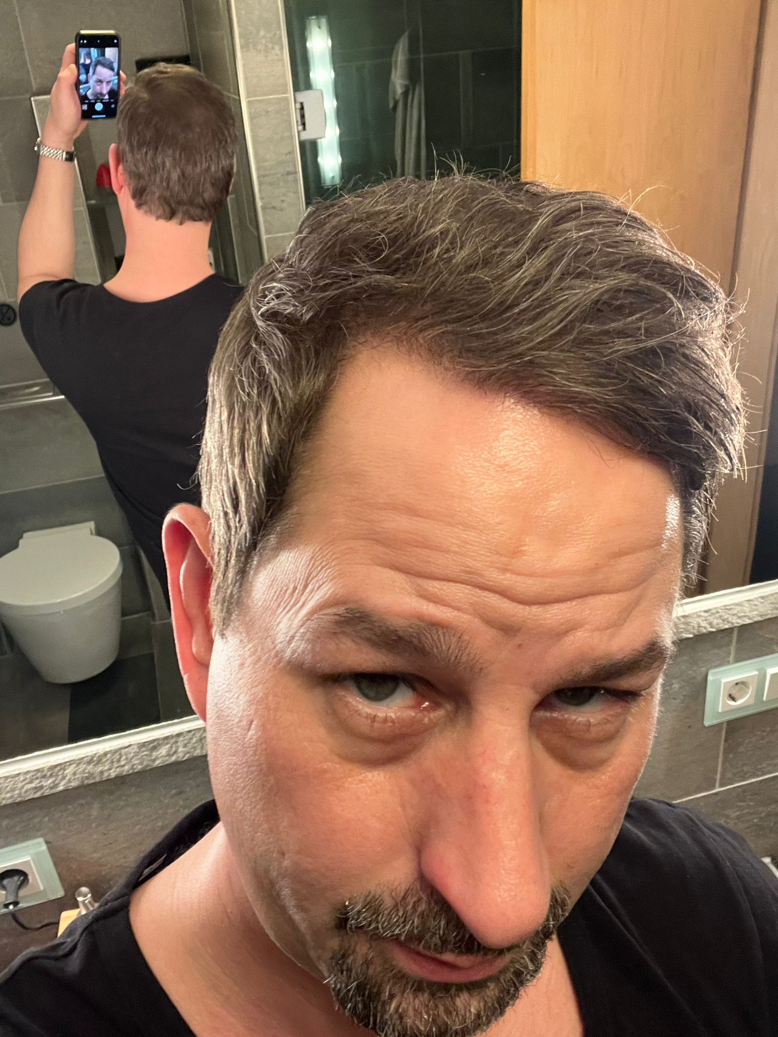 Es wurde sehr viel Wert auf die Wuchsrichtung gelegt und mit Liebe zum Detail gearbeitet. Auch hier schaut ihr euch am besten die Fotos an. Es sieht sehr natürlich aus und niemand aus dem weiteren Umfeld würde eine HT vermuten. Der Spender wurde nicht ausgebeutet. Darüber bin ich sehr froh, da ich seitlich leider mit Shockloss des Bestandhaares zu tun hatte. Wäre hier ohne Rücksicht auf Verluste entnommen worden, hätte es sich vielleicht nicht wieder erholt.