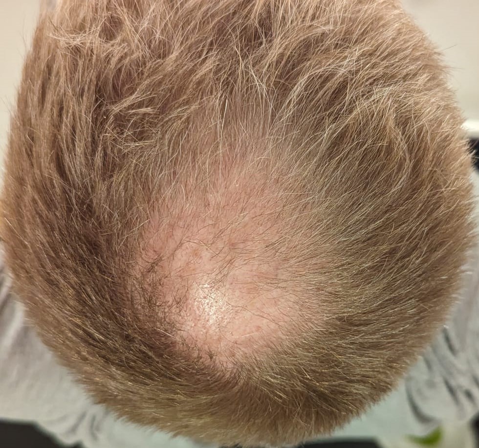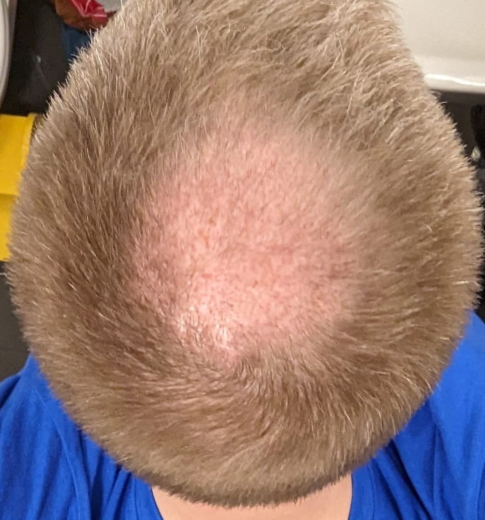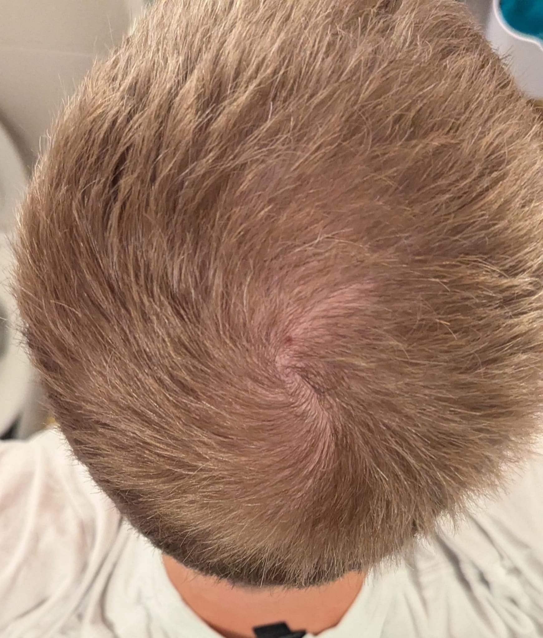 Definitiv ein sehr ernüchternder Monat. So gut wie alle neuen Härchen im Empfängerbereich sind ausgefallen und es waren nur noch vereinzelte längere Haare sichtbar. Mit dem Laienblick waren auch keine "schwarzen Punkte" mehr auf der Kopfhaut zu sehen, die ich als Haarwurzeln identifiziert hätte. Man fängt natürlich an über Shock-loss und so zu googlen aber hab's auch schnell wieder seingelassen. Entweder da wächst noch wieder was oder halt nicht. Der Empfängerbereich sah auf jeden Fall nicht "unnormal" aus, aber schon mehr nach Glatze als vor der OP.