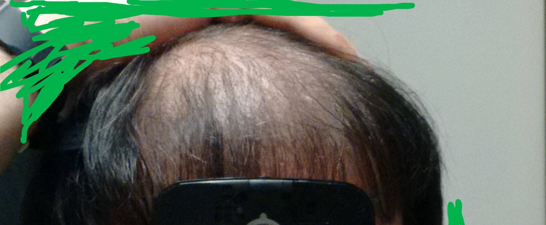 Über die Jahre ist nun im hinteren Kopfbereich eine kahle Stelle hinzugekommen. Ich vermute mal, dass ich nun etwa 3000 weitere Grafts benötige. Je nach Dichte natürlich.