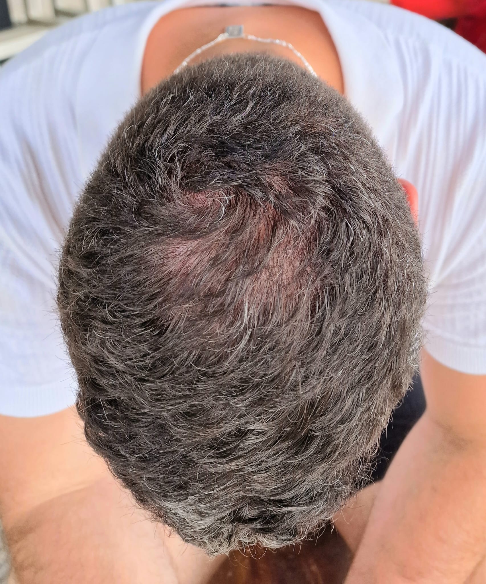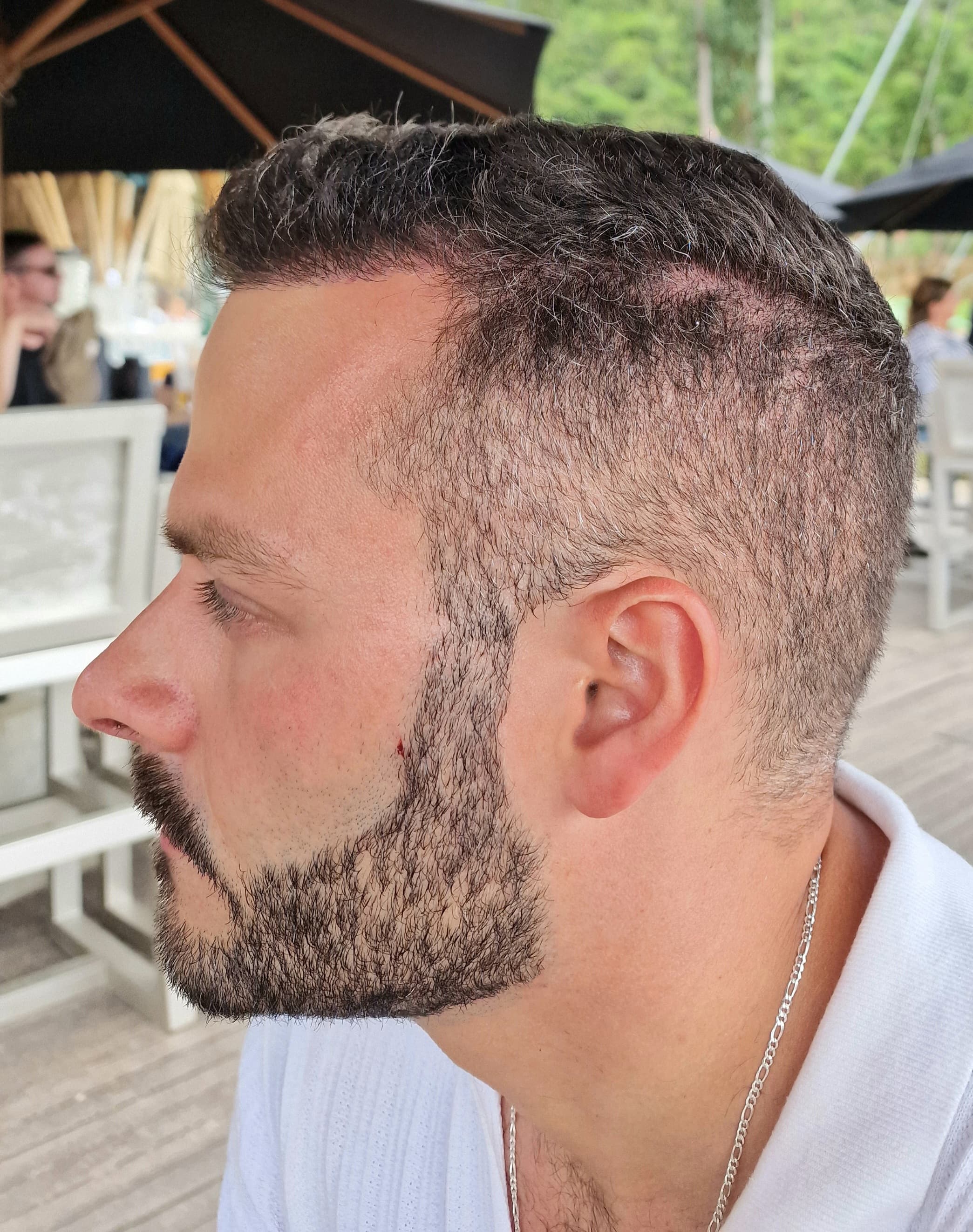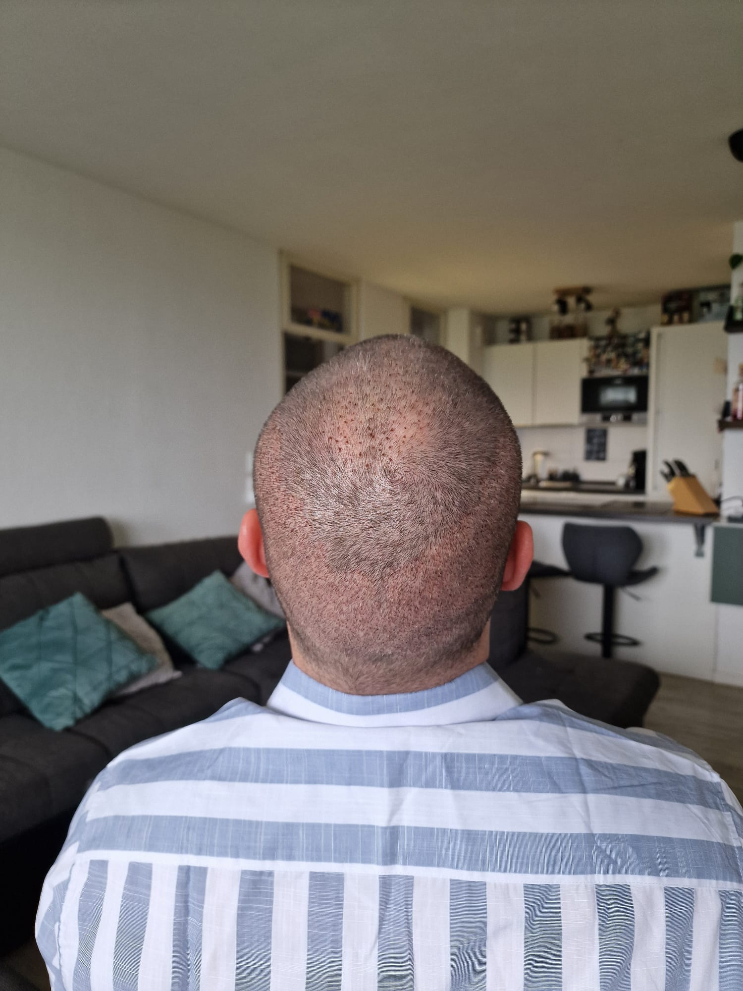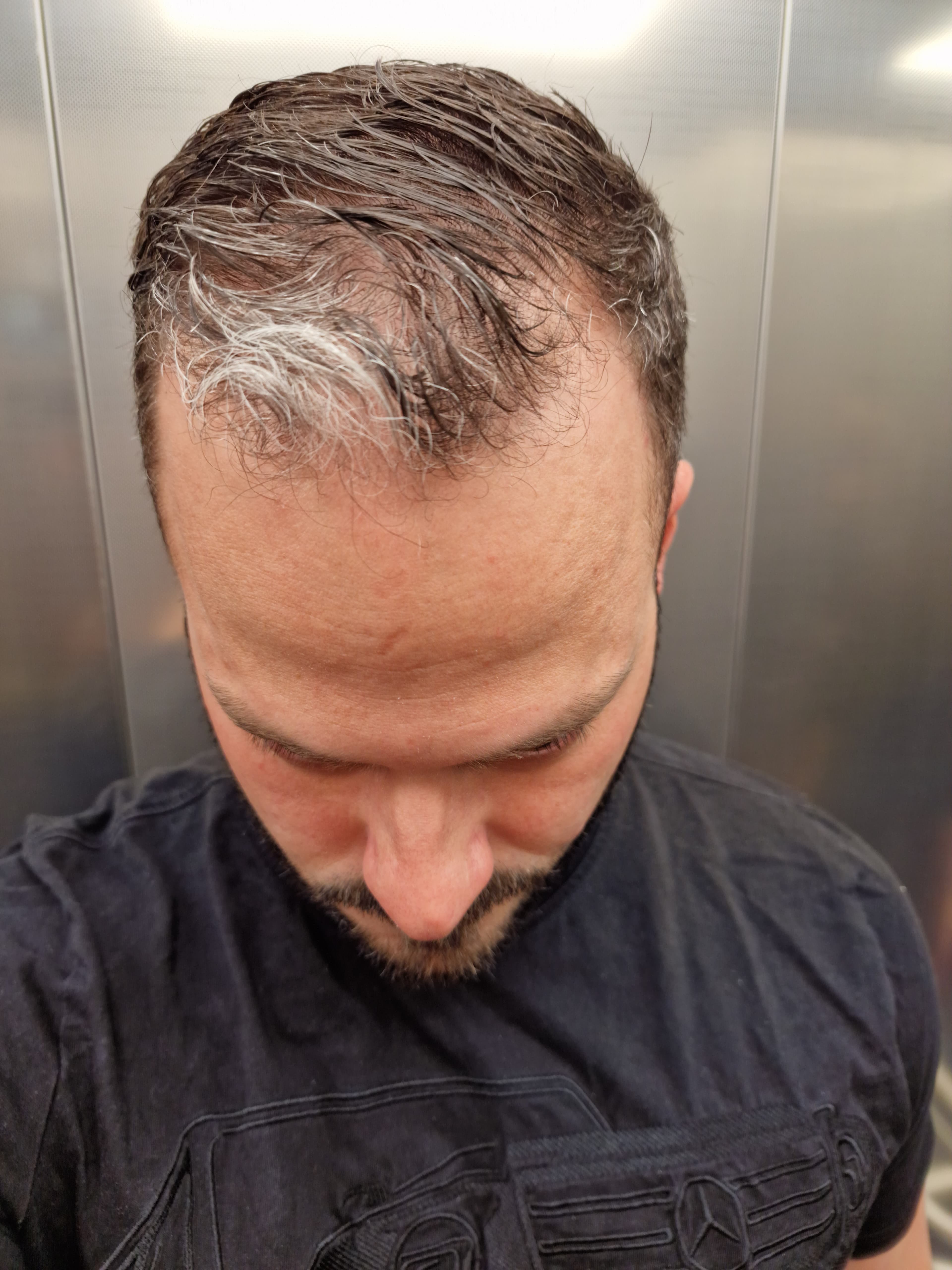 Ich gehe mittlerweile regelmäßig zum Friseur und schneide mein Haar auch gelegentlich selbst. Die Krone, wo nur etwas über 250 Grafts transplantiert wurden, könnte noch dichter sein, aber es gibt schon sichtbare Verbesserungen. Mal sehen, wie sich dieser Bereich weiterentwickelt.