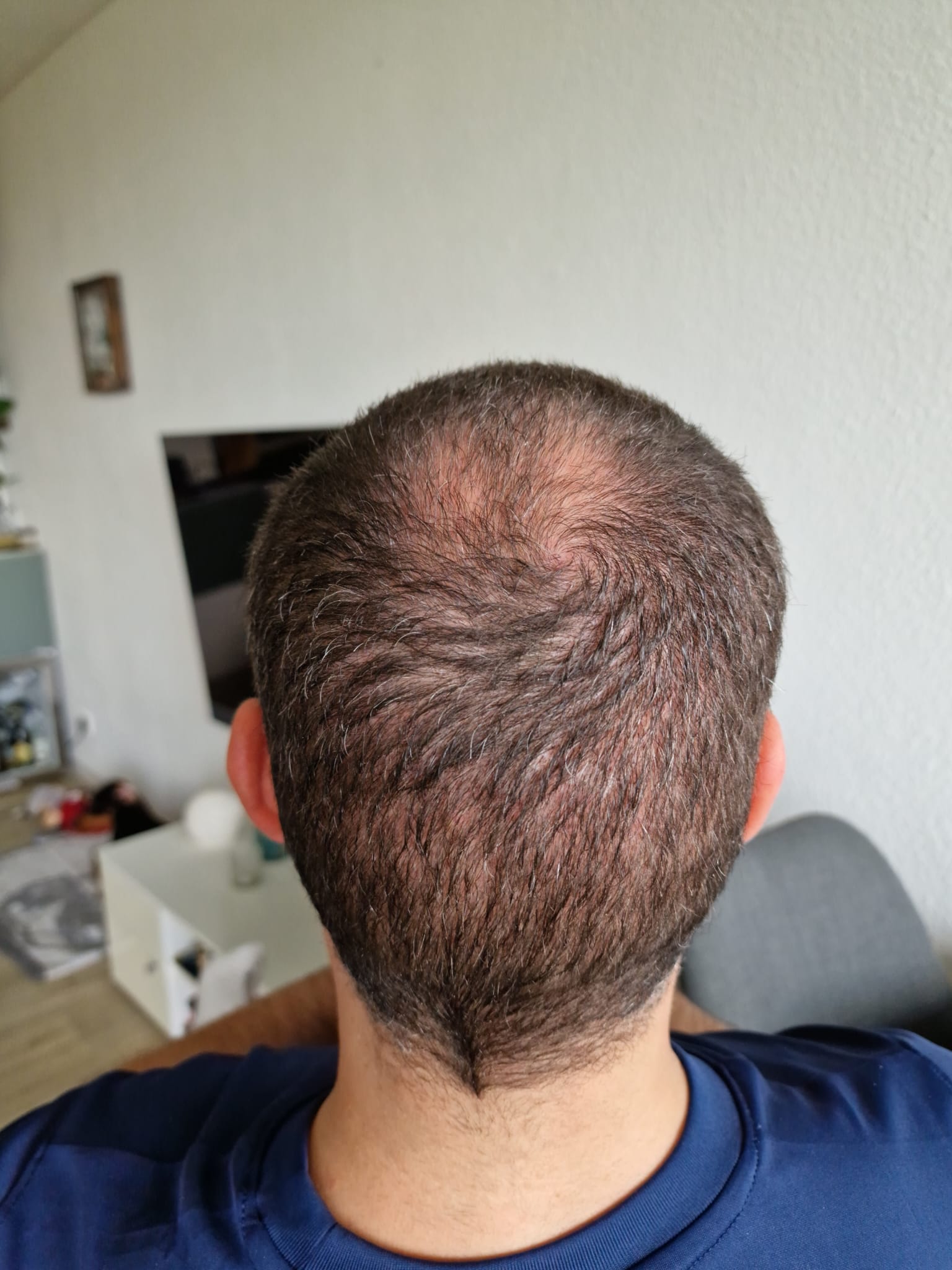 Der Shock Loss war definitiv eine Herausforderung, aber es scheint, als wäre es nur ein vorübergehender Rückschlag gewesen. Die Haare wachsen nun kräftig nach, obwohl die Kopfhaut noch etwas gerötet ist. Ich habe im Juli auch mit meiner ersten PRP-Behandlung begonnen, um das Haarwachstum weiter zu unterstützen.