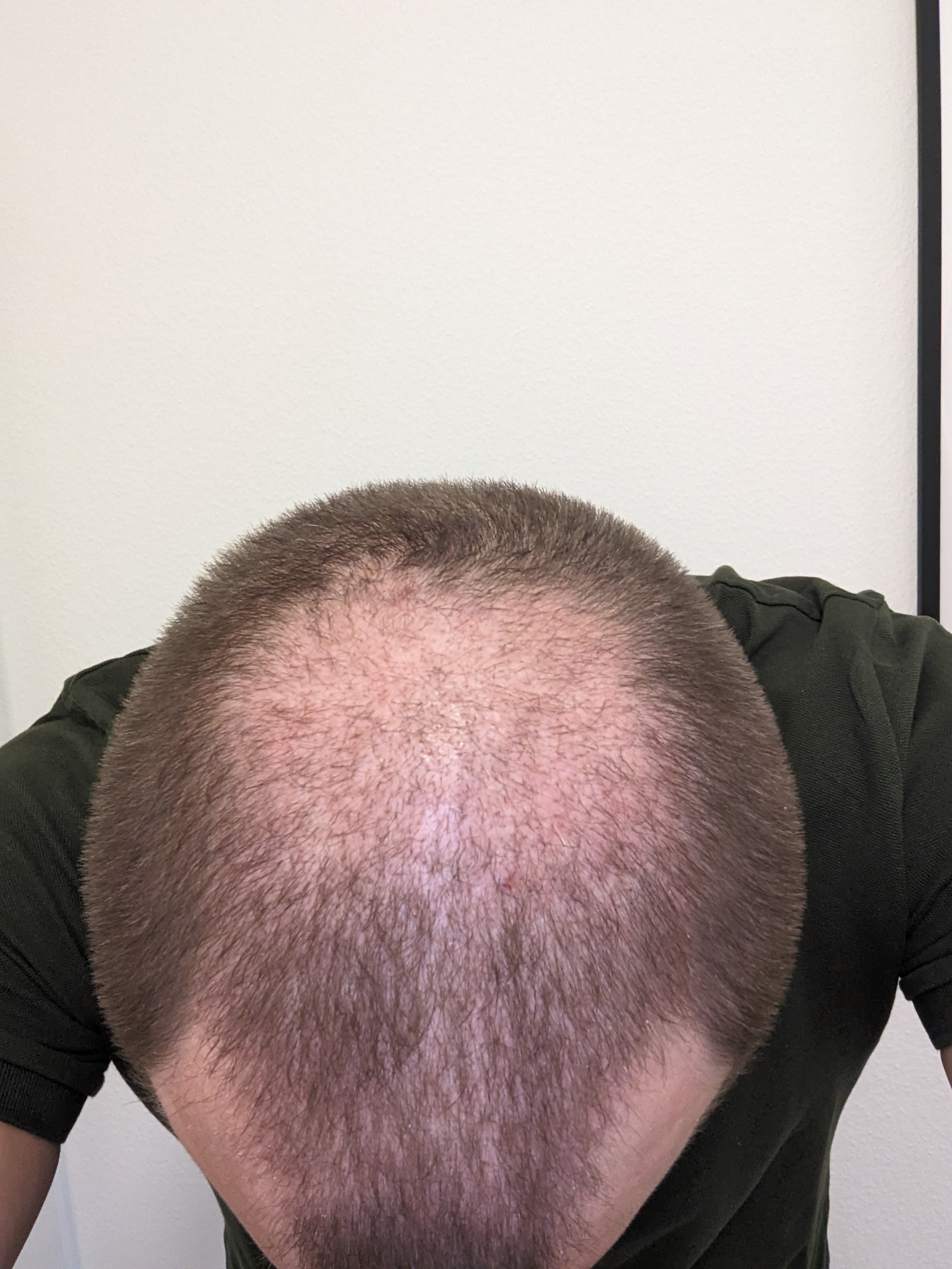 Nevertheless, I didn't give up on the topic, sought advice from various doctors at home and abroad and finally from Mr. Muresanu end of 2023. The consultation was extremely pleasant, especially given my previous history. The situation was assessed realistically and no false promises were made. Mr Muresanu openly stated that a large-area transplant (all bald spots) would not be possible. We would rather have to concentrate on one spot, which in my case was clearly the back of the head tonsure.