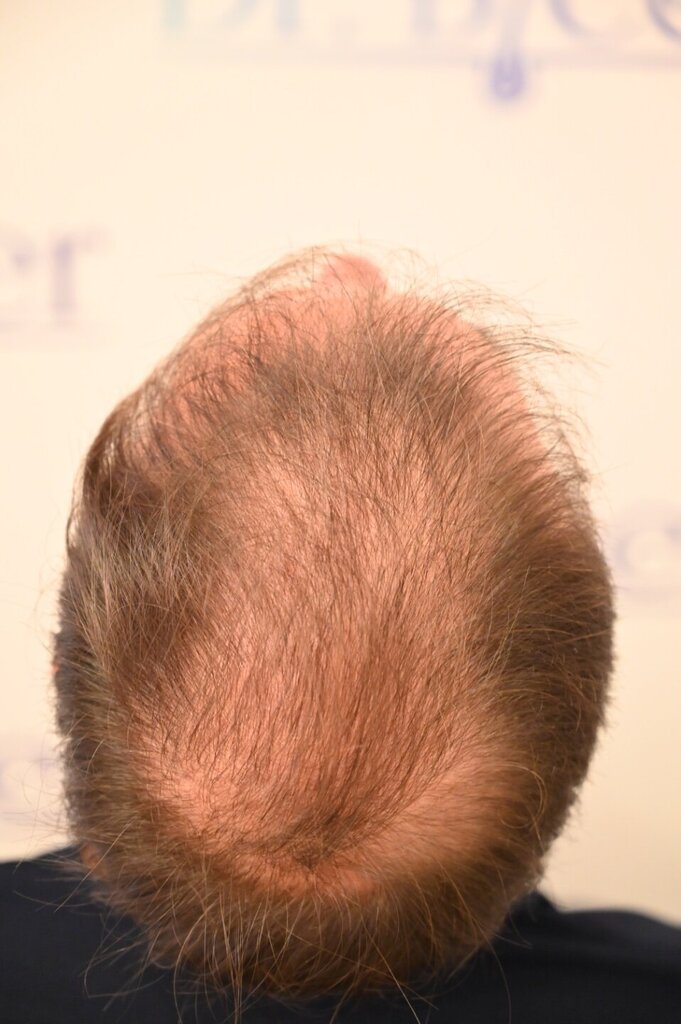 Kannst du mal ein Foto vom gesamten Oberkopf inkl. Tonsurbereich zeigen ? Ich frage mich nämlich wieso bei dir ein Kreis auf der Mitte der Tonsur markiert und an der Stelle nichts transplantiert wurde ? Hast du da jetzt nicht ein optisches Loch?