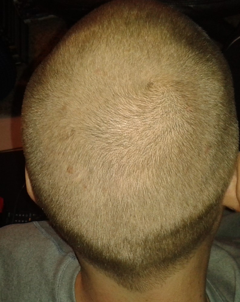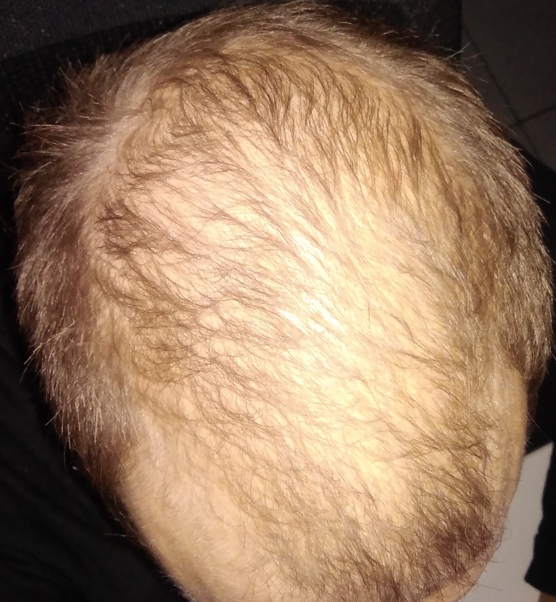 Bin 36 Jahre alt, Haarausfall begann mit Anfang 20, fiel aber, von den GHE abgesehen, nie wirklich auf, da ich ausschließlich 3-5mm Frisur getragen habe. In den letzten Jahren jedoch auch in der Kopfmitte deutlich vorangeschritten.