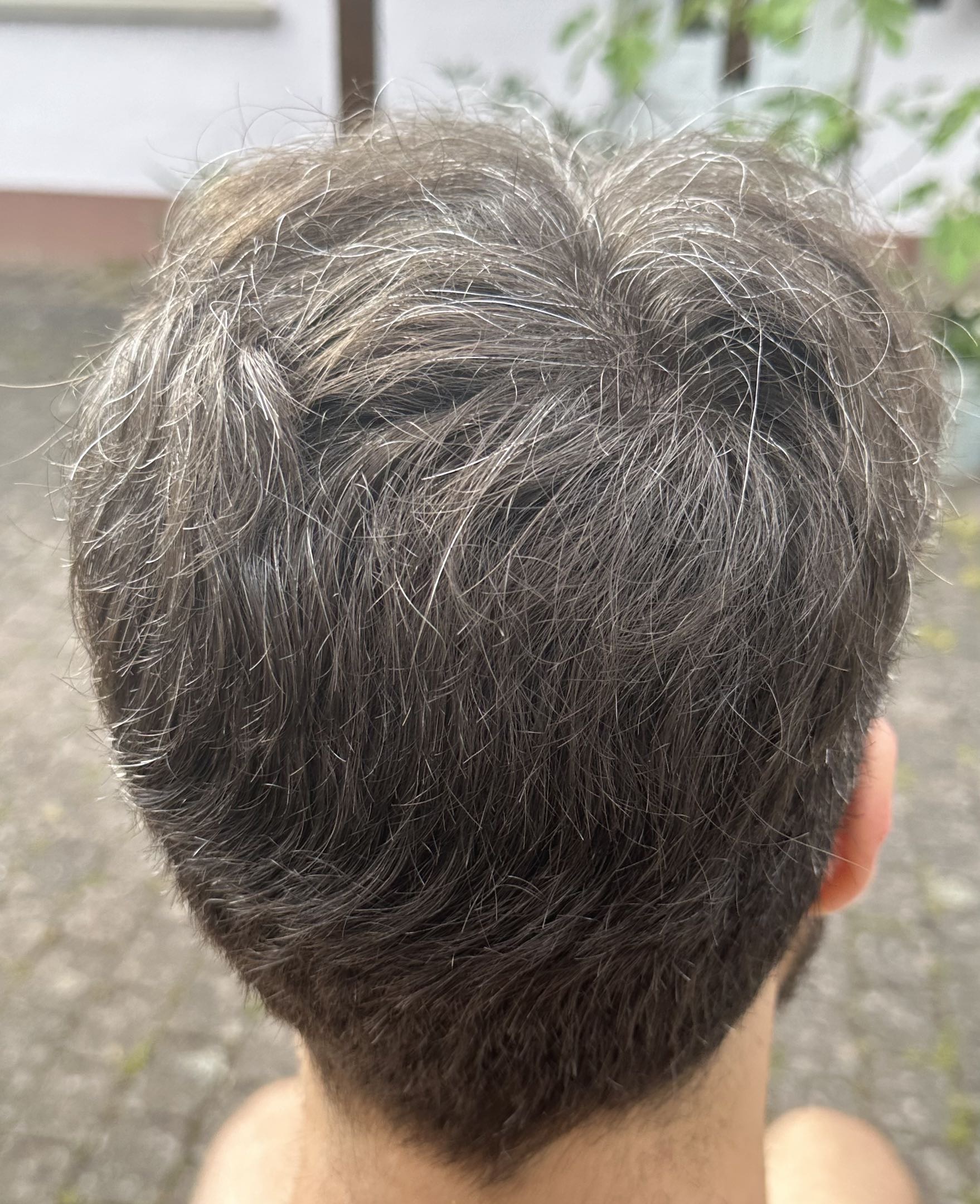 Anbei sind ein paar Bilder von mir. Ich bilde mir ein einen ganz guten Donor zu haben und im hinteren Drittel des Kopfes kaum von Ausfall betroffenes Haar zu haben. Hinten habe ich einen Wirbel.