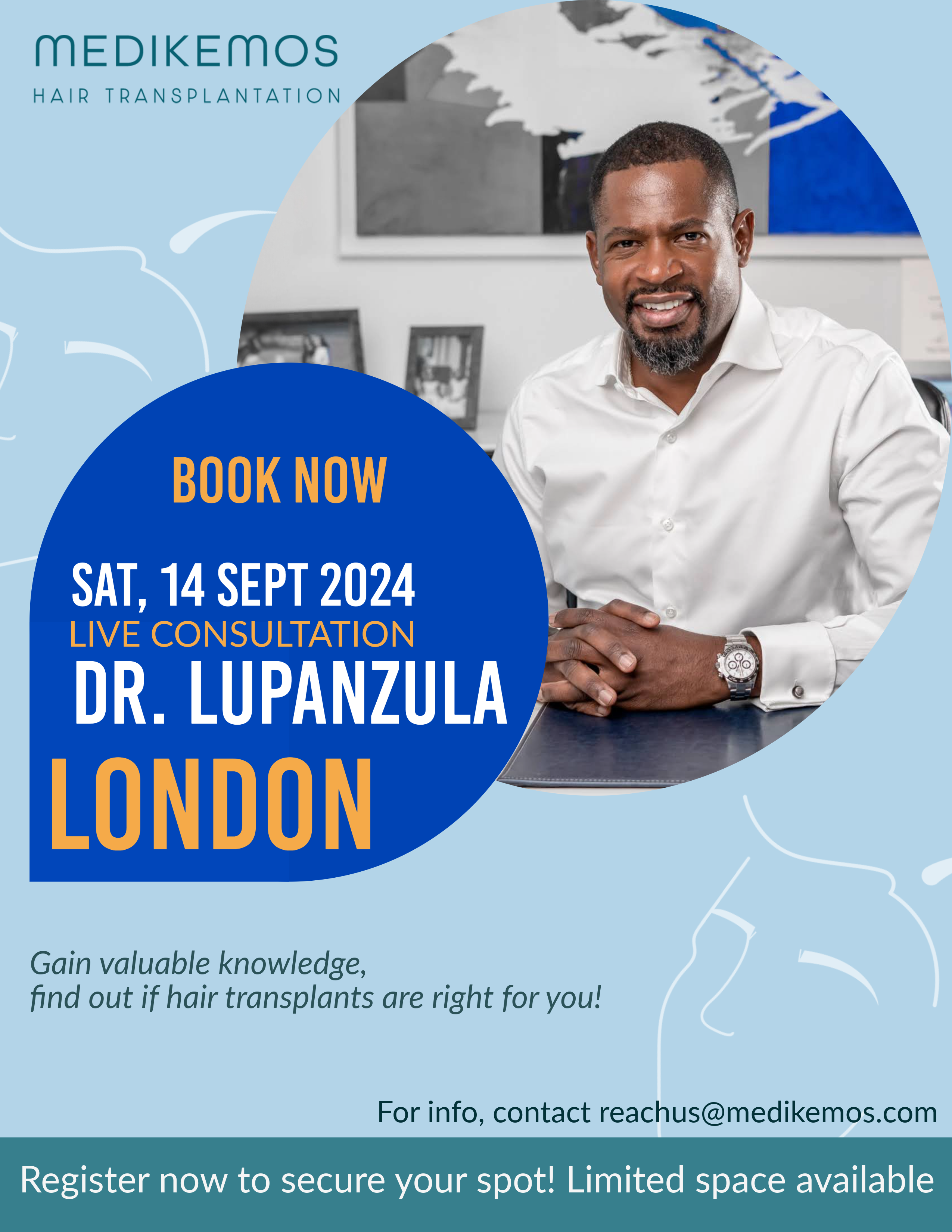 Am 14. September 2024 wird Dr. Emorane Lupanzula in London sein, um private und exklusive Haartransplantationsberatungen anzubieten.