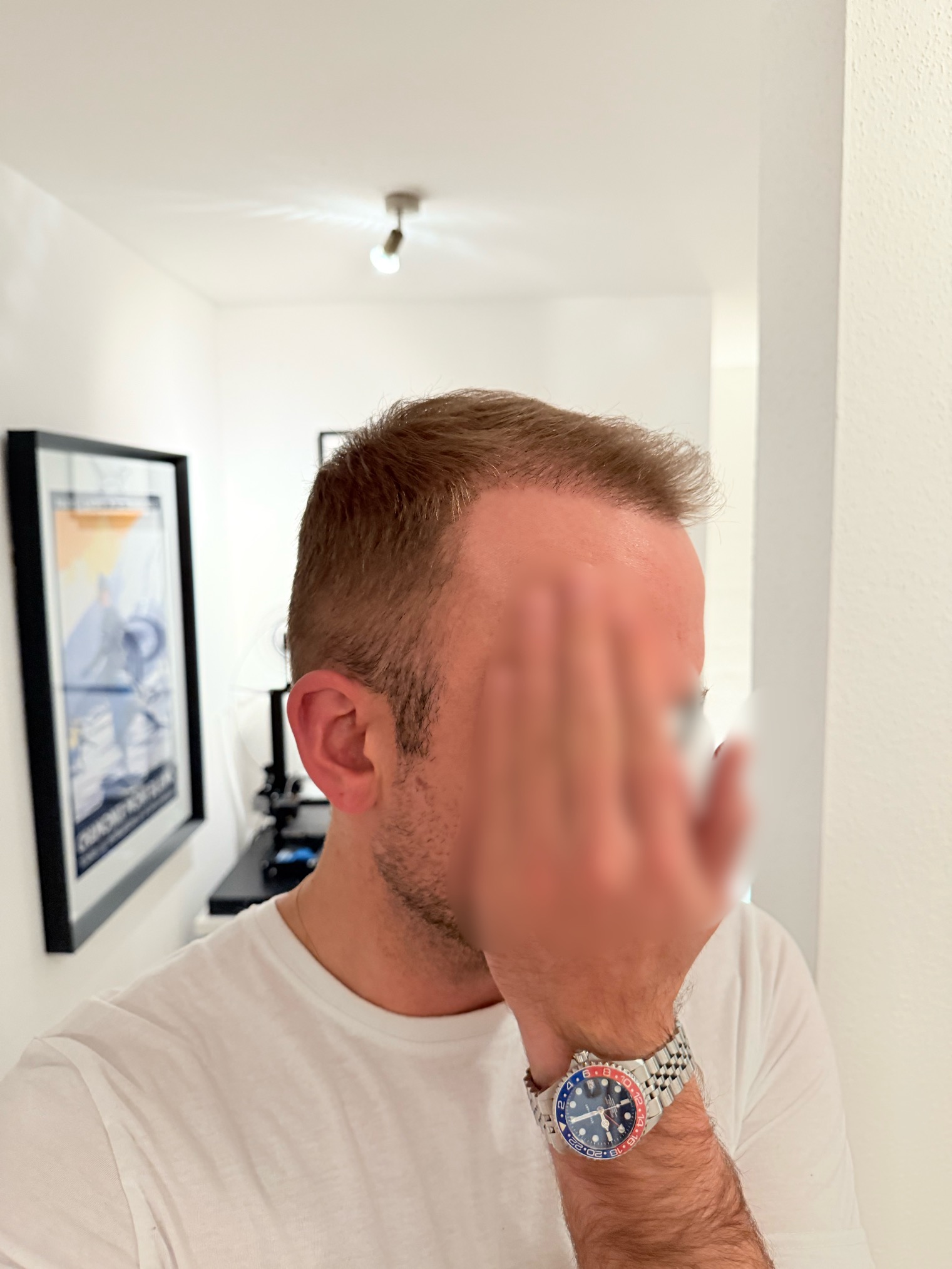Ich hatte bereits seit meiner Jugend Geheimratsecken und mit Mitte 20 dann auch am Hinterkopf lichter werdendes Haar. Bereits zu dieser Zeit habe ich mich bzgl. einer HT informiert. Mir wurde damals jedoch geraten, dies auf spätere Jahre zu verschieben und zunächst den Haarausfall zu behandeln.