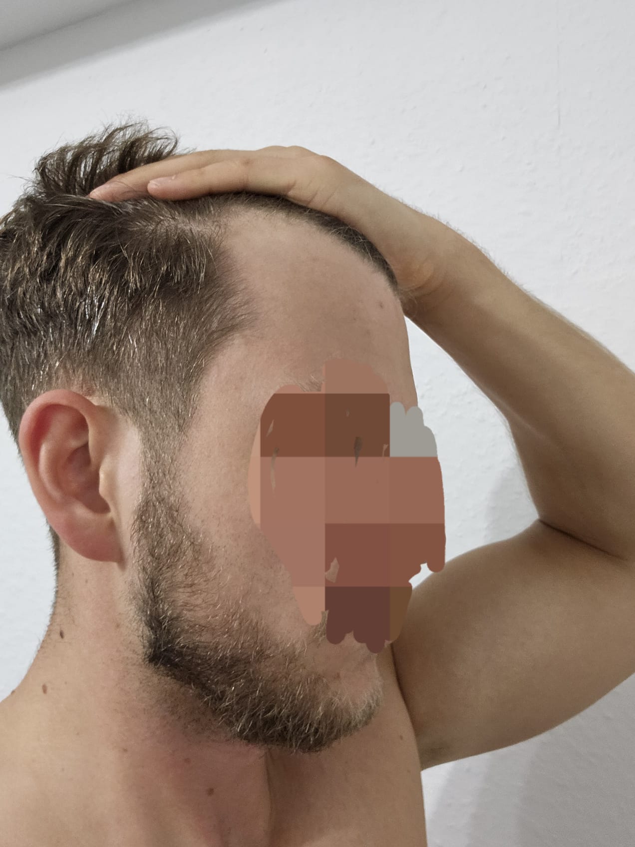 Meiner Meinung nach hat sich mein Haaransatz in den letzten Jahren nur minimal verändert. Rückblickend auf alte Fotos sehe ich kaum Unterschiede, was auf einen sehr langsamen Verlauf hinweist.