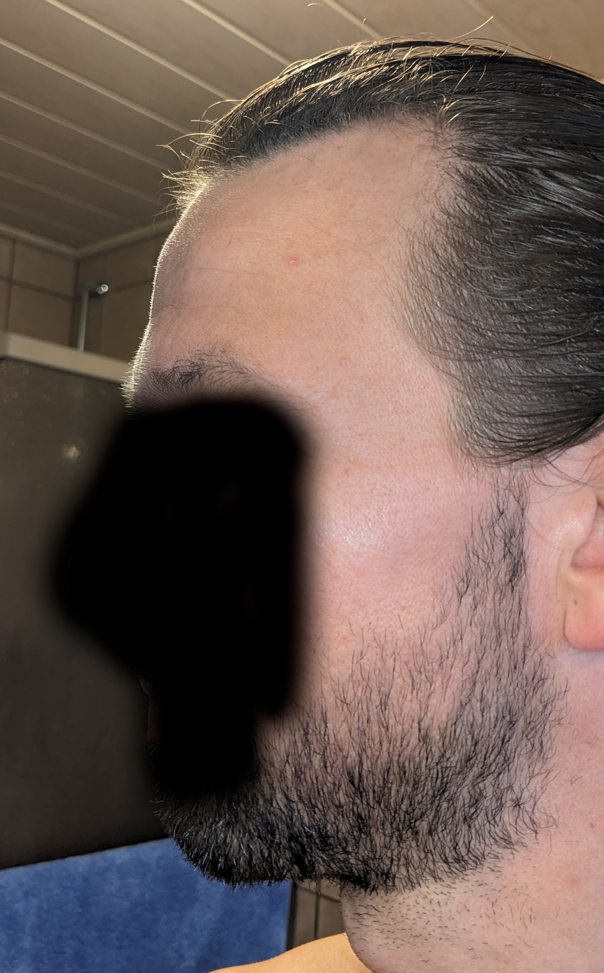 Der Haarausfall stagniert nun schon seit längerer Zeit (~1-2Jahre). Ich habe immer mal wieder für längere Zeit Minoxidil im Bereich der Geheimratsecken verwendet und auch eine zeitlang Fin eingenommen, was ich jedoch wegen Nebenwirkungen wieder abgesetzt habe.