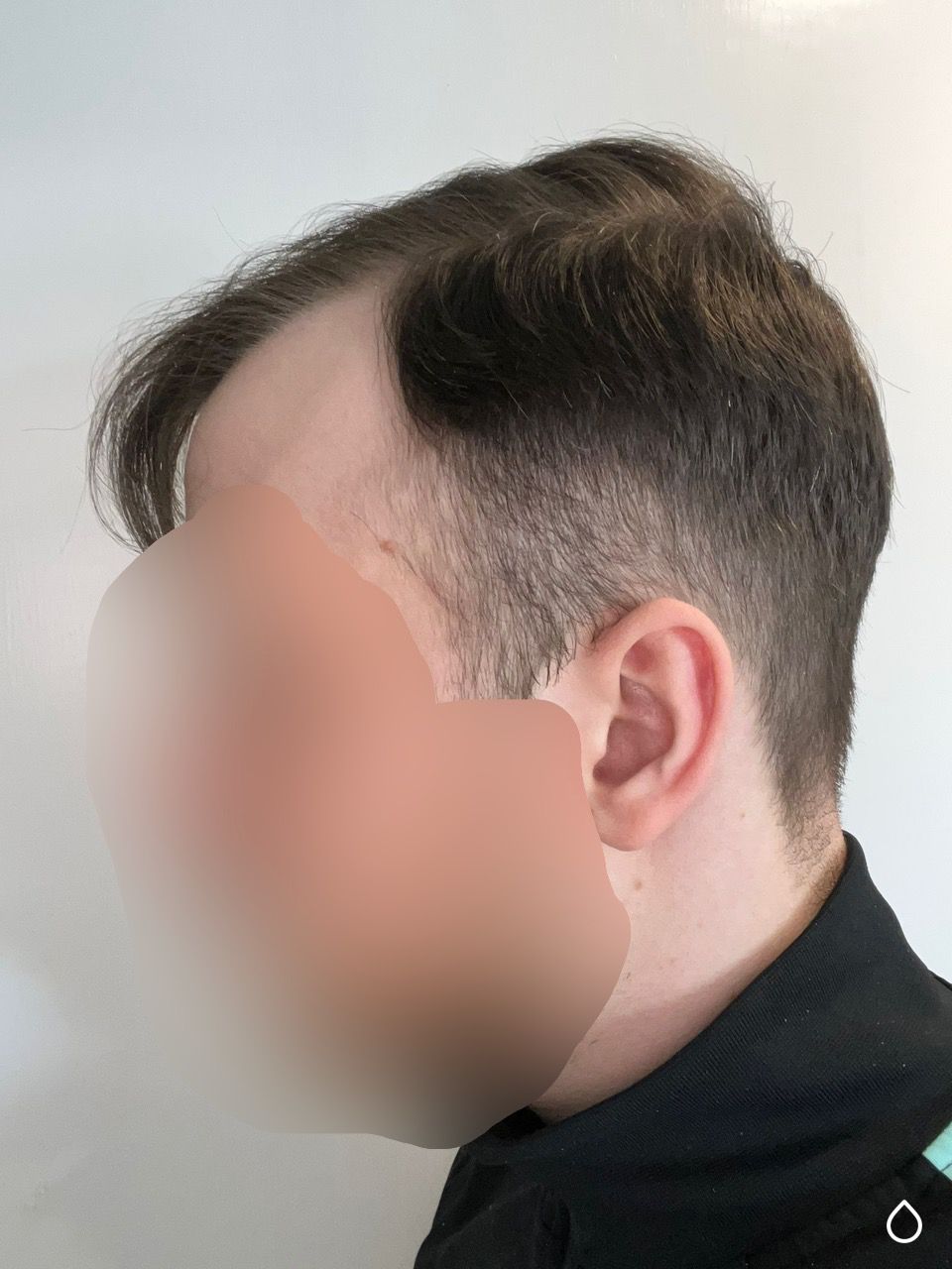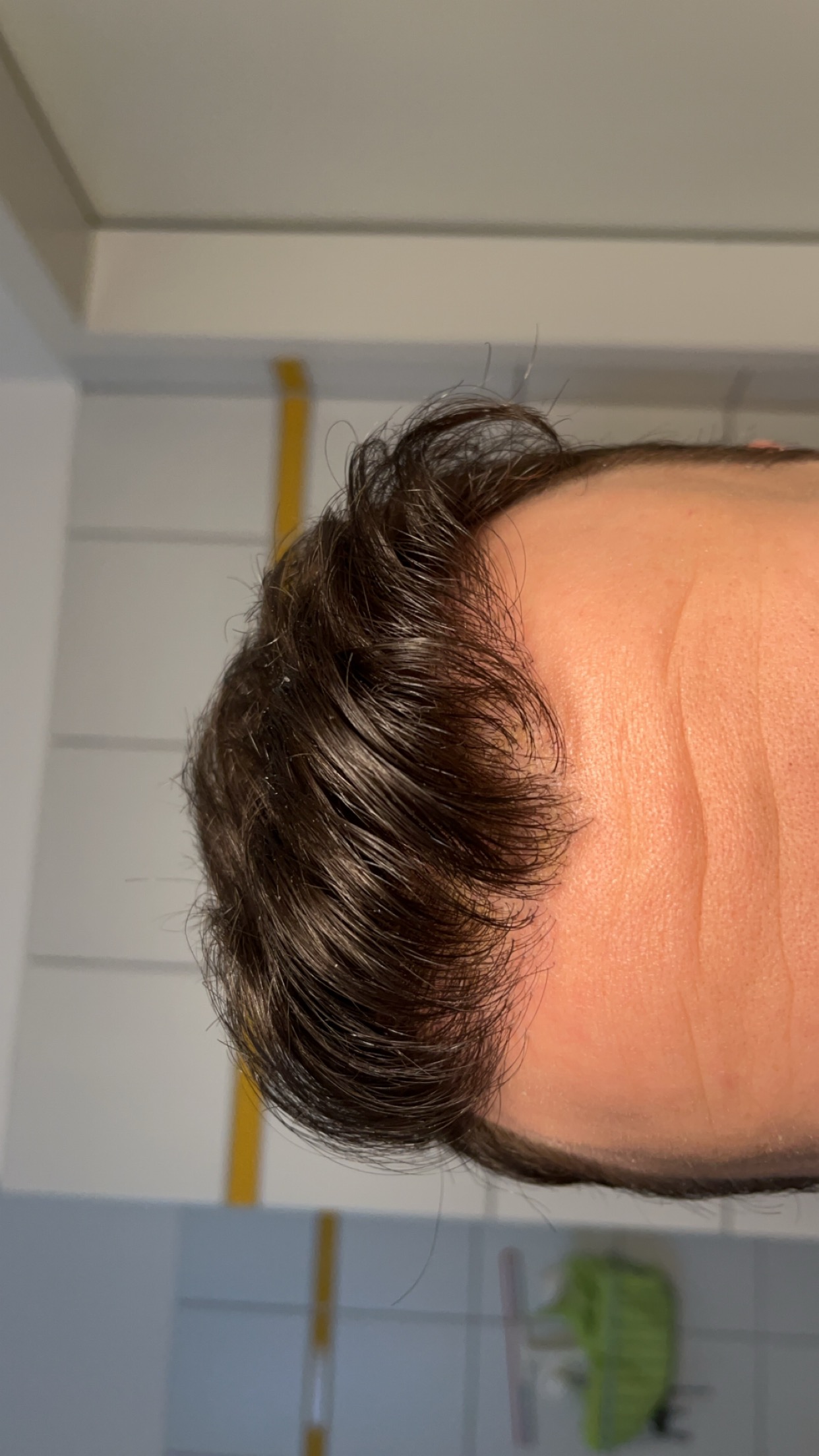 Ich habe meine Haare ca. ab dem vierten Monat nicht mehr abrasiert. Seit dem dritten Monat mache ich eine PRP-Behandlung und bin aktuell zufrieden mit dem Stand meiner Haare. Eine Seite ist bisher schneller angewachsen als die andere, jedoch mache ich mir keine Gedanken, dass die noch etwas lichtere Seite nachzieht.