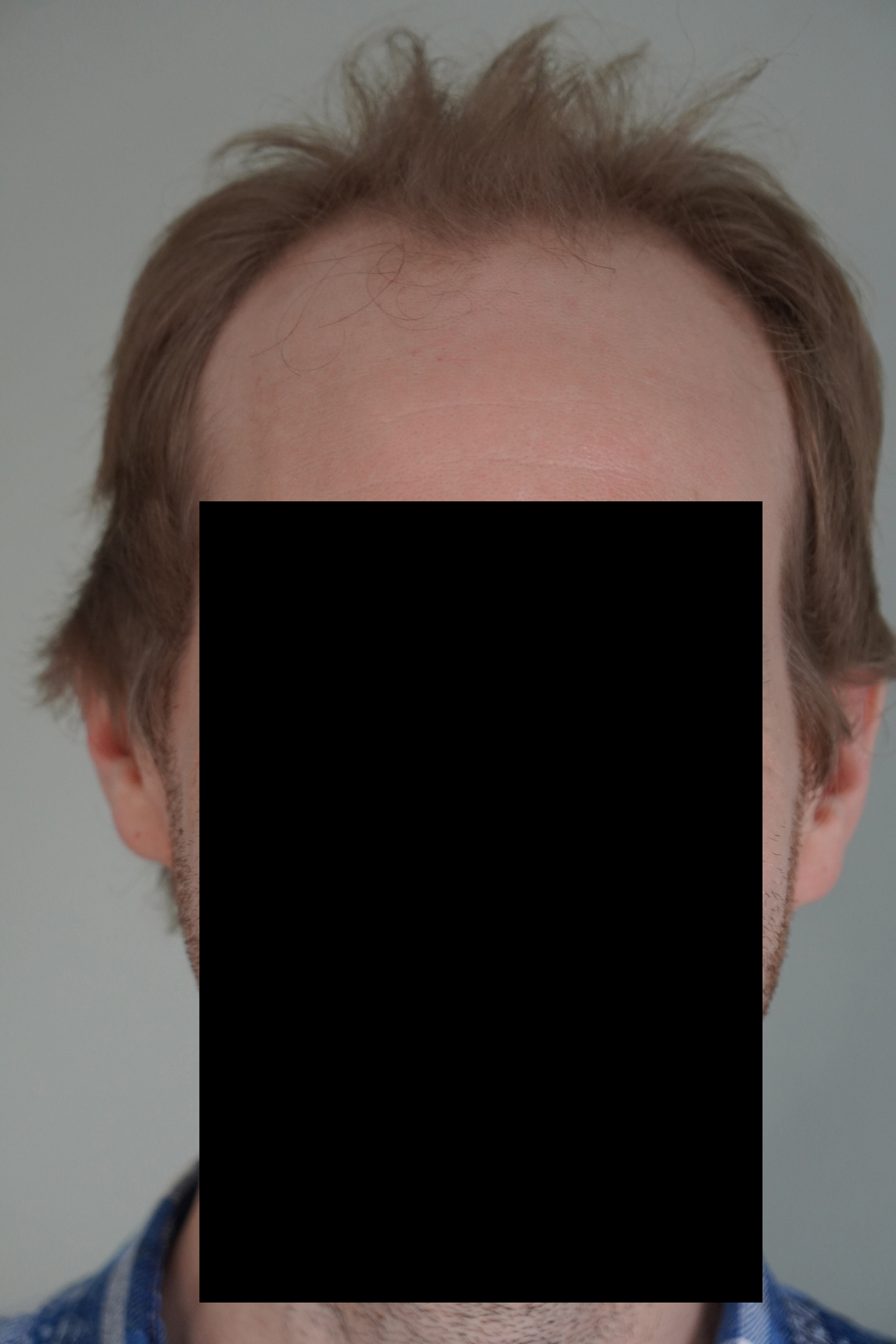 Vielen Dank. Die Tonsur hat eine lichtere Abdeckung bekommen, da ich die Front und oben bevorzugt habe. Es sollte so aussehen, als ob ein natürliches Haarausfallmuster entstanden ist, das von hinten mit einer leichten Dünnung angefangen hat. Das oberste Ziel war die Natürlichkeit.