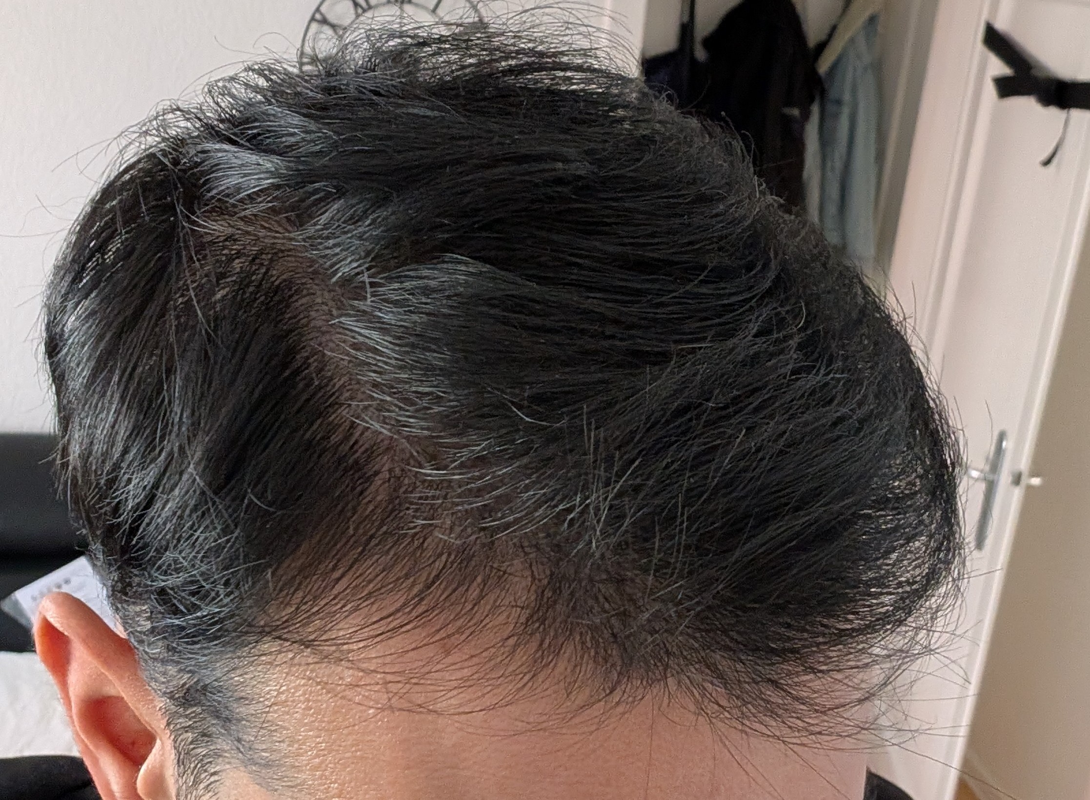 Würde ich die seiten sehr kurz tragen würde man auf der Linken seite einen Hellen Fleck sehen. Bei meiner jetzigen Frisur sieht mans nicht (slickback). Ich denke, Muresanu wird mir hier eine kostenlose Repair anbieten (FUE in die Narbe), hat er nach der ersten FUT auch angeboten. Aber ich denke es stört mich nicht genug um es zu tun, ich warte lieber bis ich in meinen vierzigern bin und eine dritte HT bzw. größere FUE brauche und bepflanze diese dann.