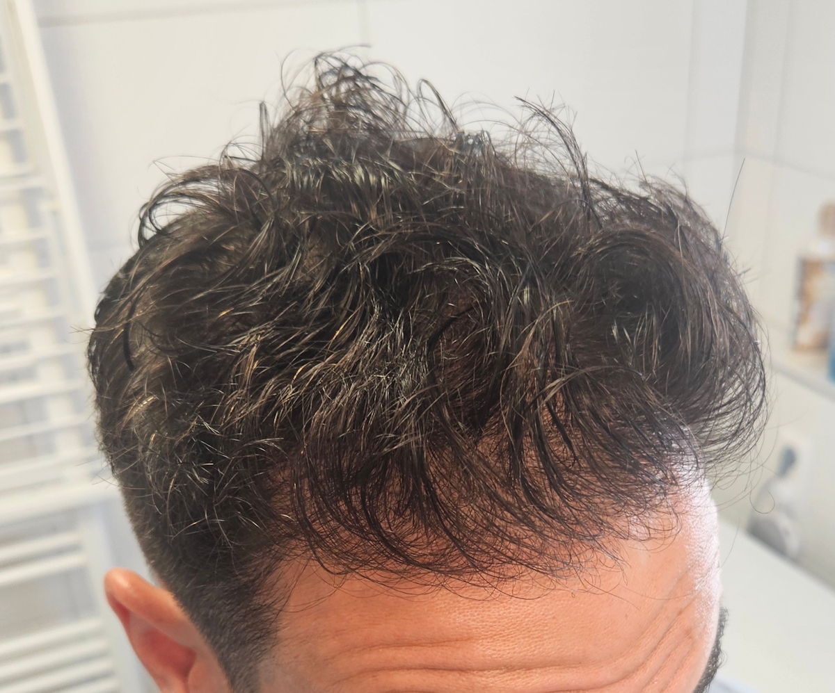 Ich erkläre mir das nach all der Zeit (fast 2,5 Jahre) so, dass meine Haare einfach mehr Zeit zur Regeneration gebraucht haben. Zudem war ich anfangs sehr übervorsichtig, fast schon hypochondrisch. Ich beobachtete den Heilungsprozess täglich, googelte jede Kleinigkeit – später befragte ich sogar ChatGPT. Schon beim Waschen der Krusten hatte ich ständig Angst, Grafts auszureißen.