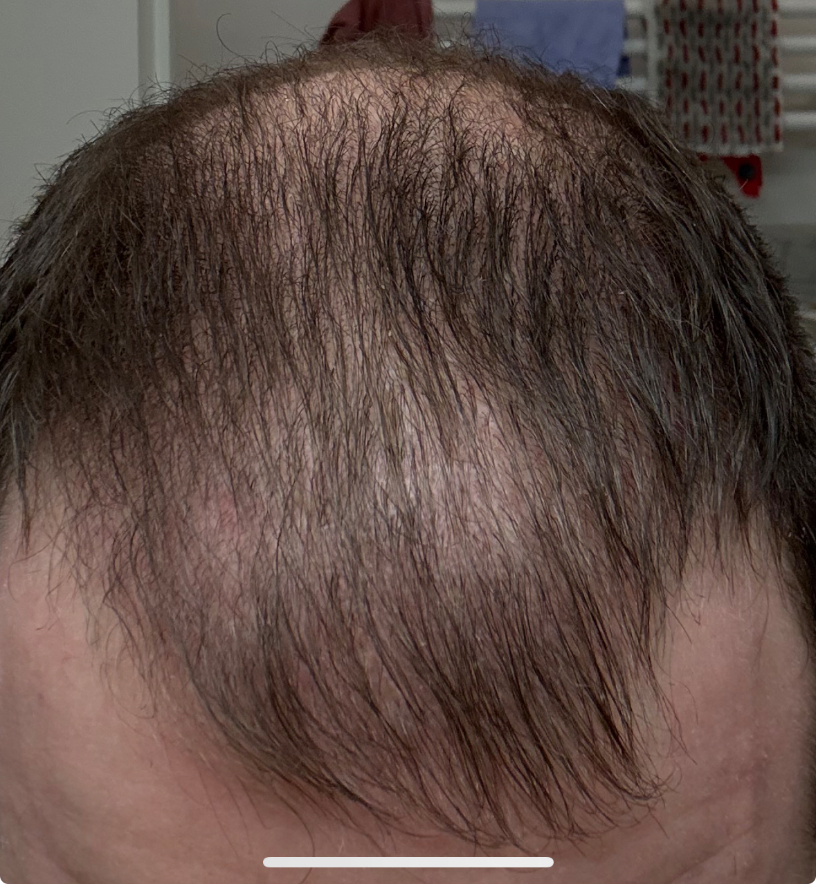 Schauen wir mal, wie es sich weiterentwickelt. Teilweise habe ich etwas Sorge, da ich keinerlei neue Haare entdecke, wobei meine Frau (nach einem hochauflösenden Foto mit Zoom) meinte, dass ich durchaus neue Haare habe, diese aber nahezu komplett farblos/blond und dünn sind. Gleichzeitig finde ich, dass es jetzt - in Relation zu den Aufnahmen als das Shedding besonders stark war - schon dichter ist. Nichtsdestotrotz sieht es auch so aus, als wären es wieder die Haare ‚von hinten‘ die länger nach vorne wachsen und so etwas mehr Dichte suggerieren.