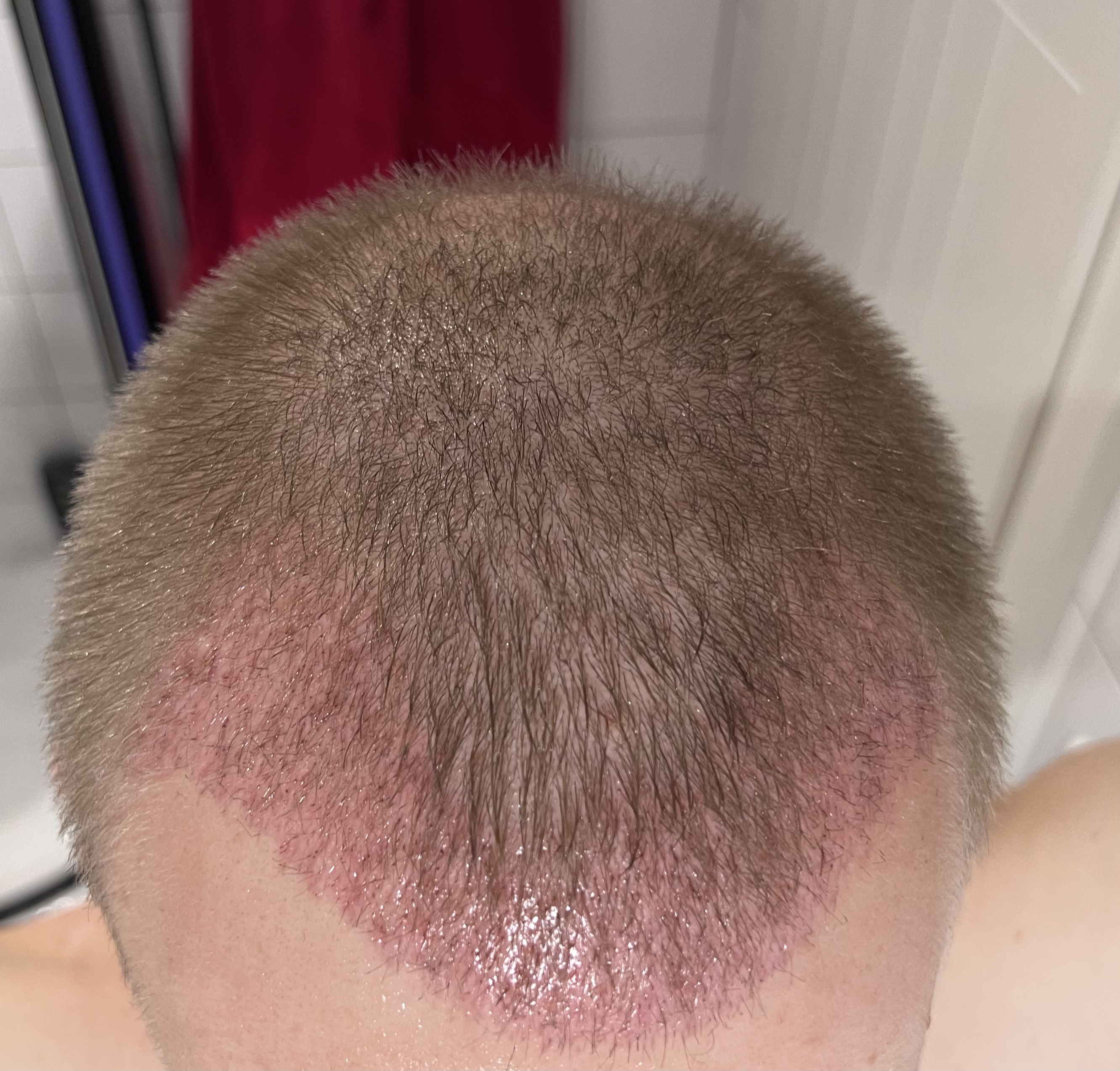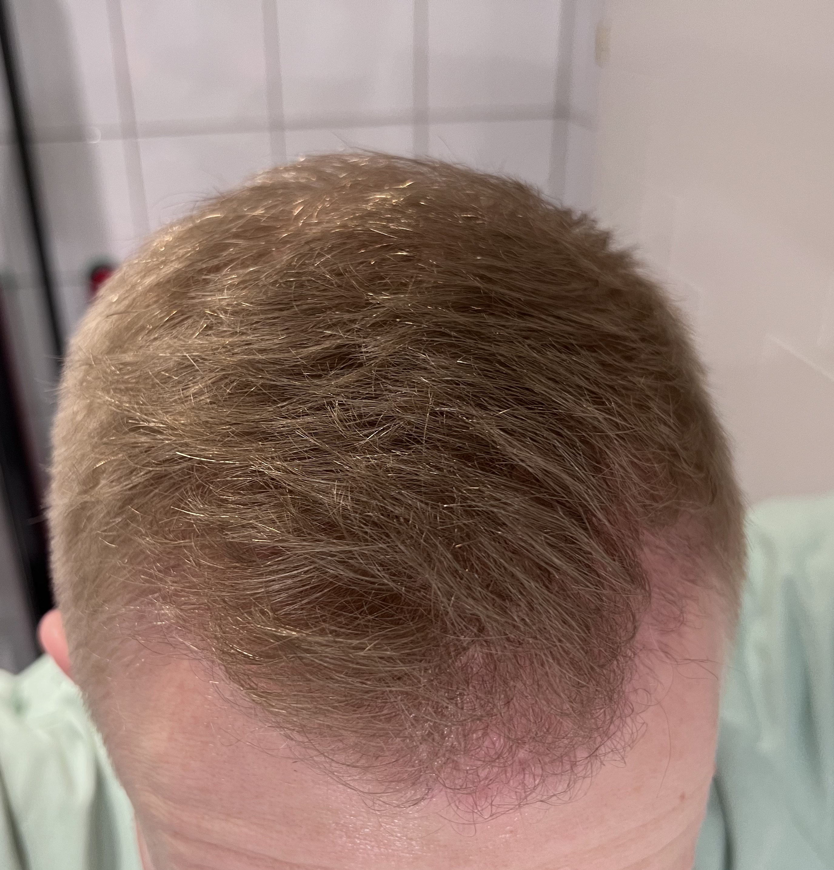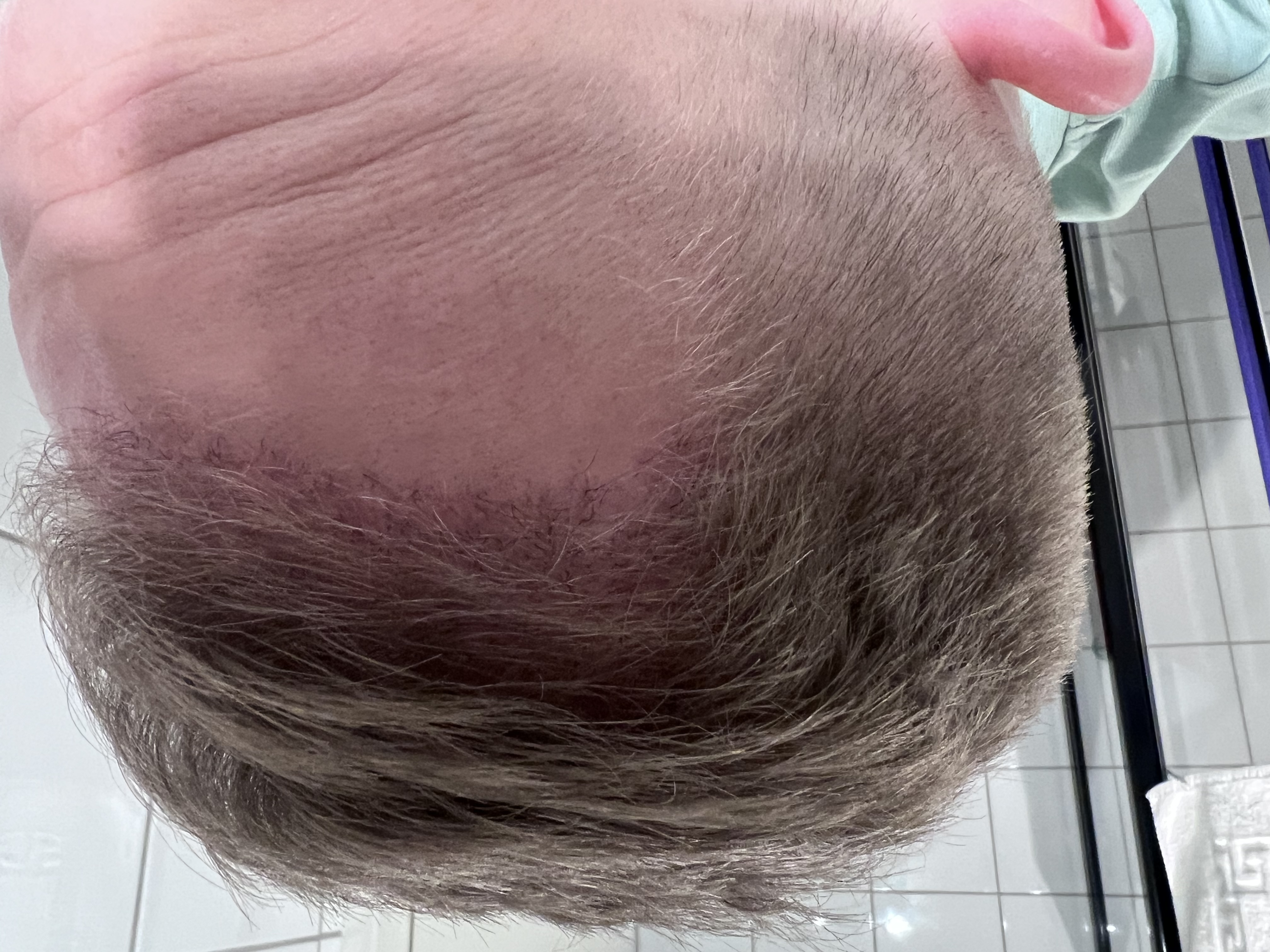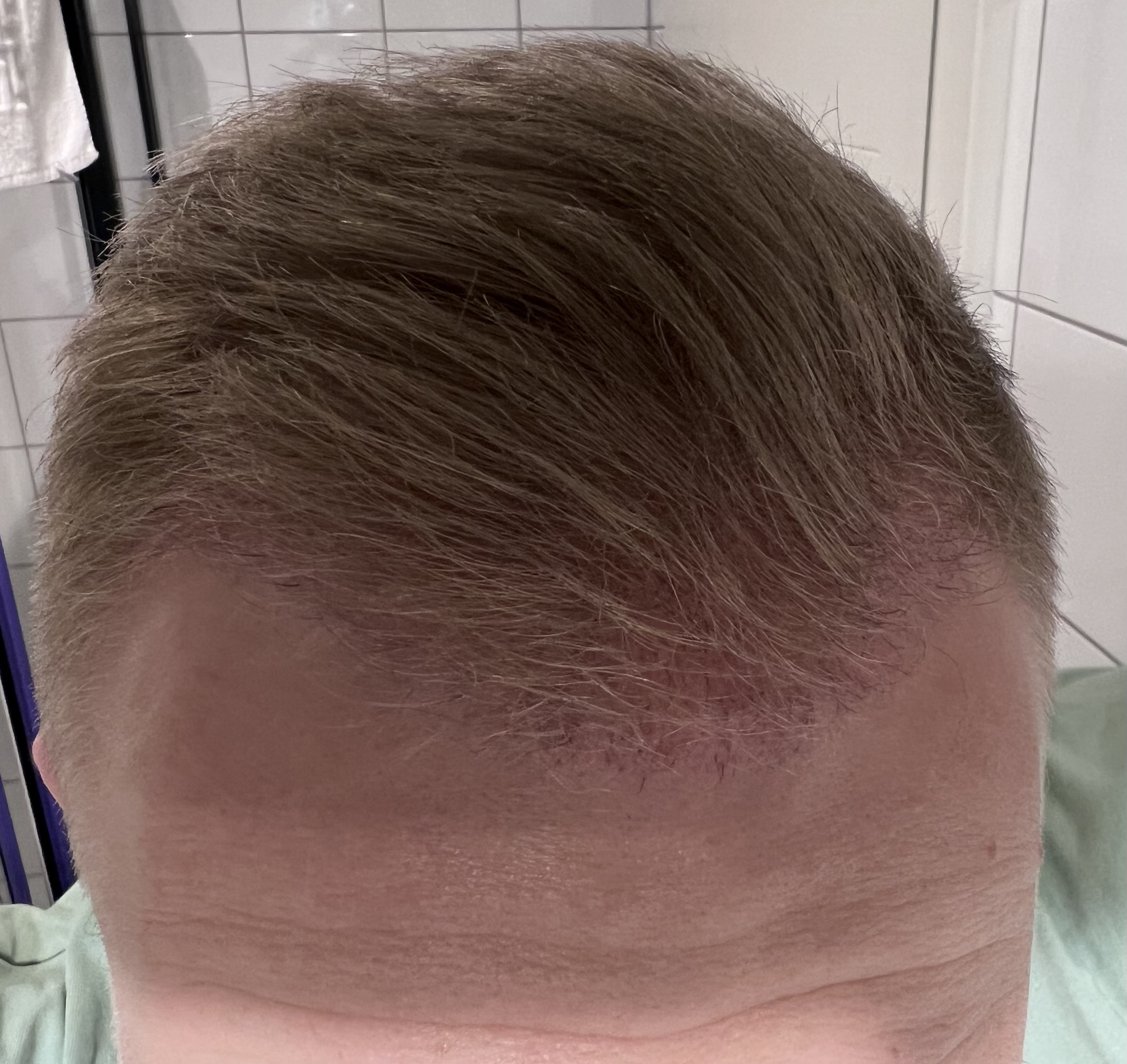 Die Haare werden immer weniger anstatt mehr, jetzt beginnt wohl die harte Phase. Die anderen werden länger während die transplantierten noch relativ kurz sind und viele davon sich schon verabschiedet haben. Die Rötung is doch auch noch sehr präsent, vor allem am Abend.