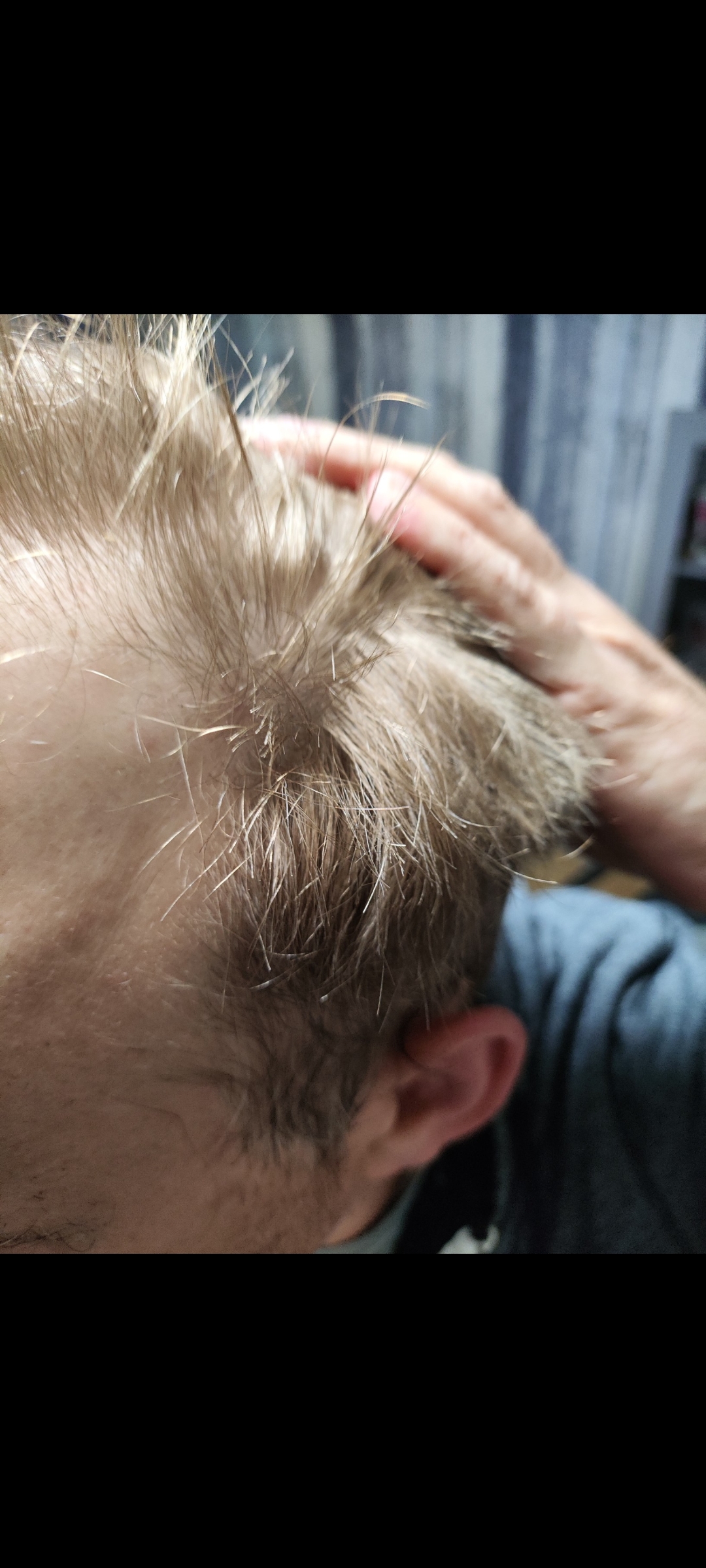 Heute war die Transplantation. Ging recht langsam los mit Bildern, schneiden und Besprechen der Haarlinie.