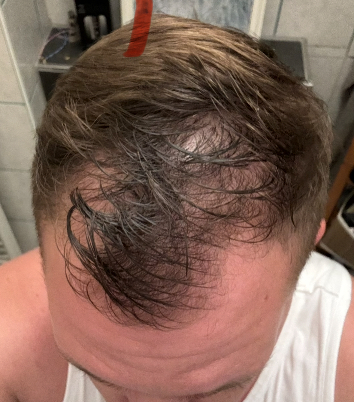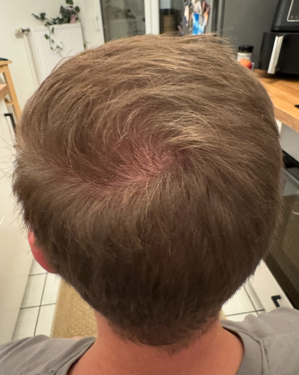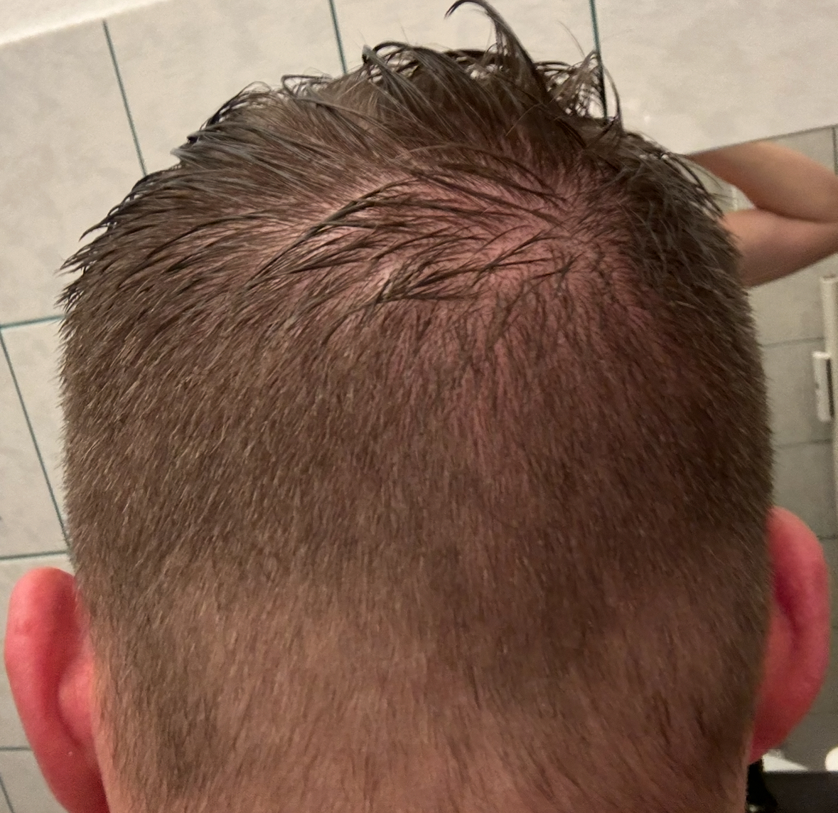 Aktueller Haarstatus nach der Hamilton-Norwood-Skala: vermutlich irgendwas zwischen III oder IIIA
