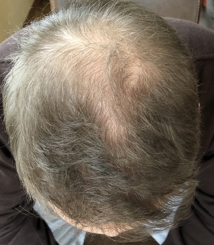 * Haarstatus in der Familie (Eltern/Großeltern): Großvater, Vater + sämtliche seiner Brüder haben Halbglatze