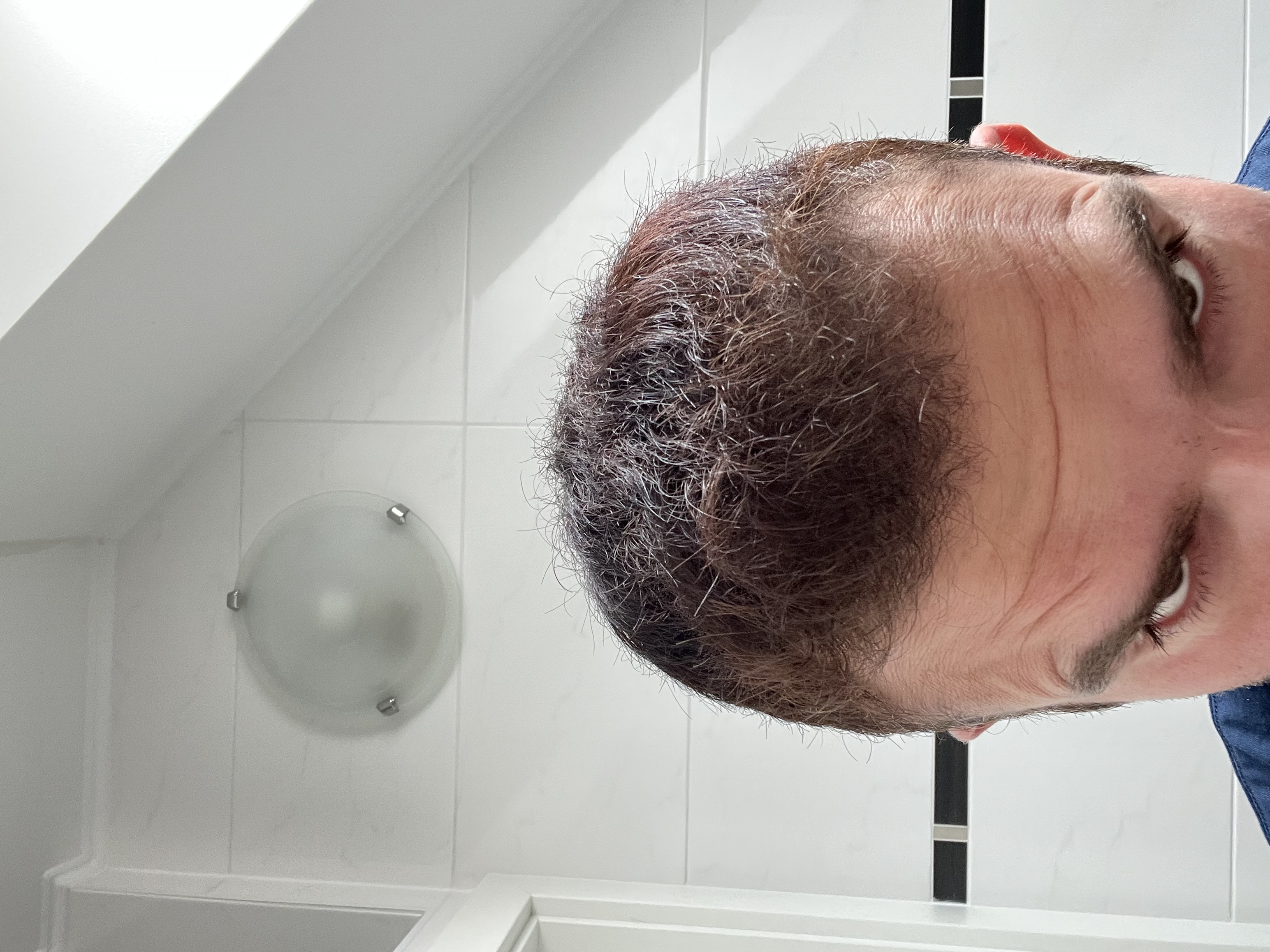 TomK, zeig doch mal deine Tonsur und den vorderen Bereich nass und nach hinten gekämmt, da sehe ich dann mal, ob deine Planung Haarlinie wie bei einem jungen Mann gut realisierbar ist hinsichtlich der Langezeitplanung.