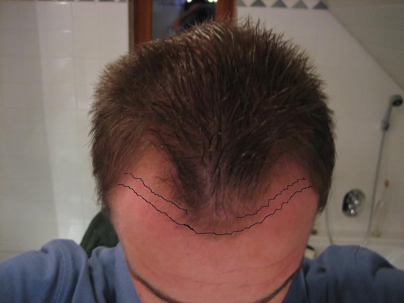 hab vor ein paar Tagen von Andreas Krämer ne mögliche Haarlinie zugeschickt bekommen (siehe Bild). Für mich kommt allerdings nur die 'obere' in Frage, da ich von Haarlinie-nach-unten-setzen persönlich nichts halte.