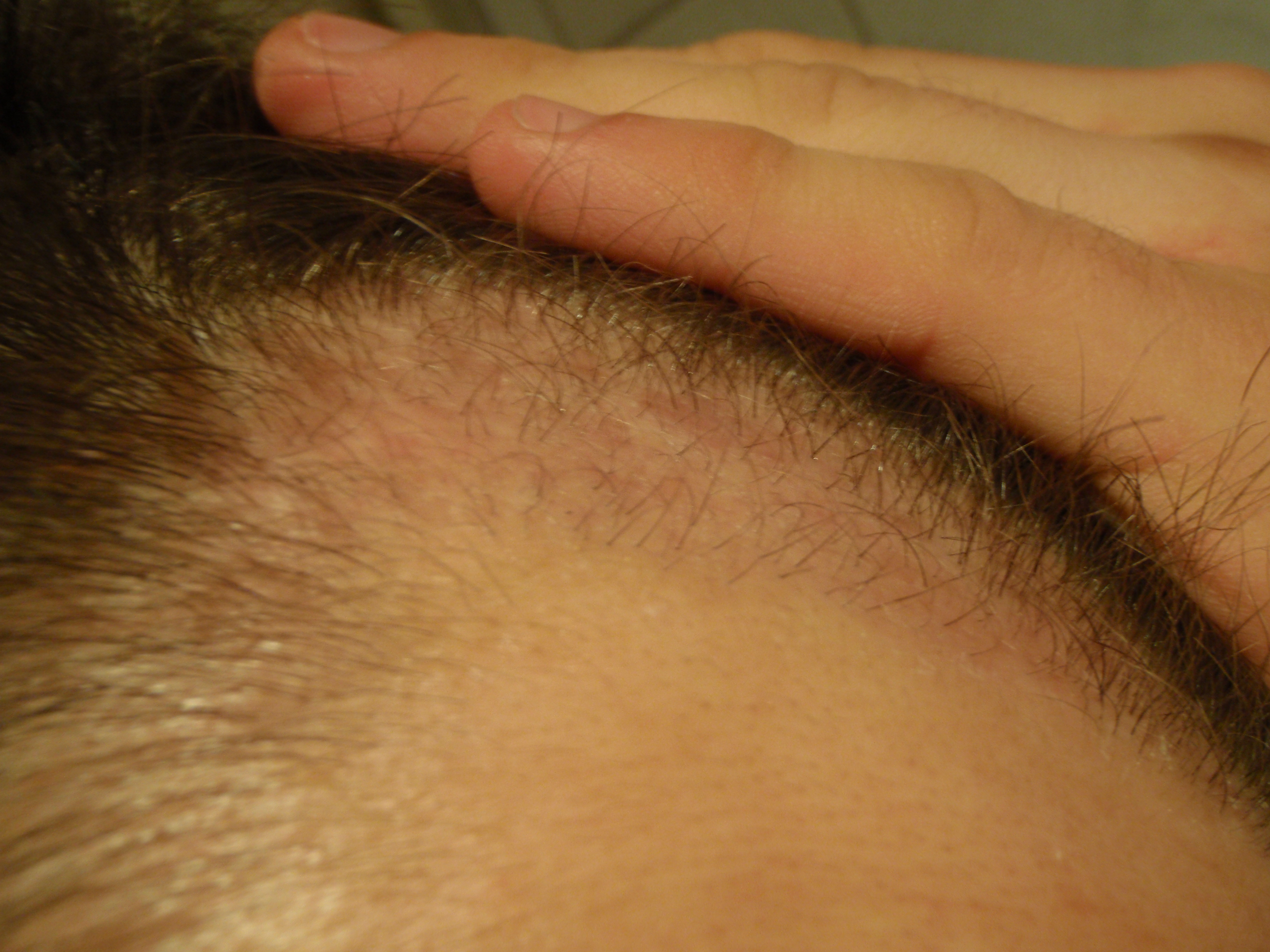 Hallo, bin gerade Zuhause angekommen und stelle jetzt mal schnell ein paar Fotos rein. Bin jetzt post OP Tag 10 und die Krusten beginnen jetzt langsam sich zu lösen und alles heilt bestens. Habe immer sehr darauf geachtet, dass ich zwei mal täglich die Haarwäsche gemacht habe und vor allem, dass der Empfängerbereich immer mit Vit E Öl befeutet war bzw. noch ist.