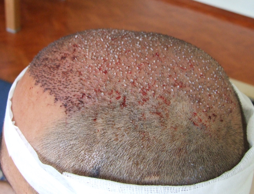Als das fertig war begann die Assistentin mit dem einsetzen der Grafts. So um 19 Uhr war –mit wiederum 2-3 kleinen Pausen - dann alles drinnen.
