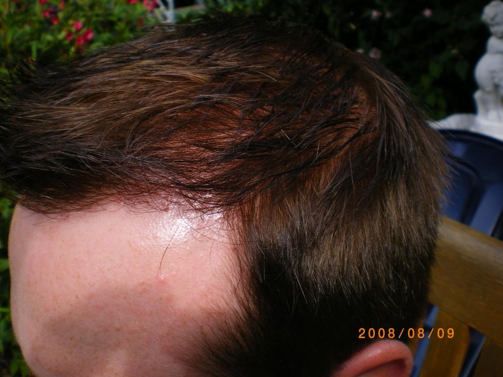 | Wolfsheart schrieb am Sam, 09 August 2008 21:04 | Gefällt euch der Haarlinienverlauf nicht oder die Dichte in der Haarlinie? Ja optimal ist die Dichte nicht. Links gefällt es mir schon ganz gut, rechts muss noch einiges gemacht werden und vorne in die spitze auch noch ein paar hundert Grafts.