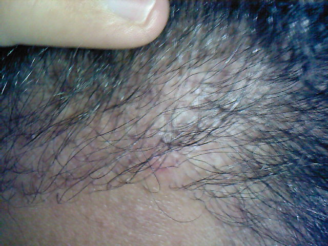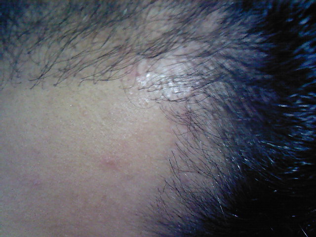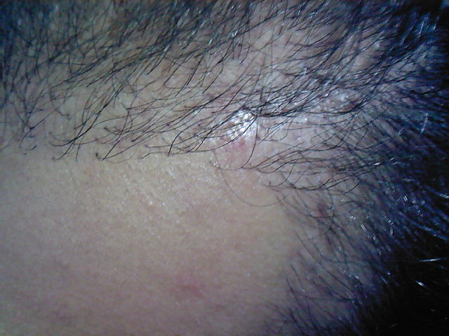 Und so sieht das ganze jetzt aus. Überall recht dichtes Resthaar,vor allem in der Mitte der Haarlinie und in den GHE siehts dünn und komisch aus, mit wenigen dicken Haare in der Haarlinie.
