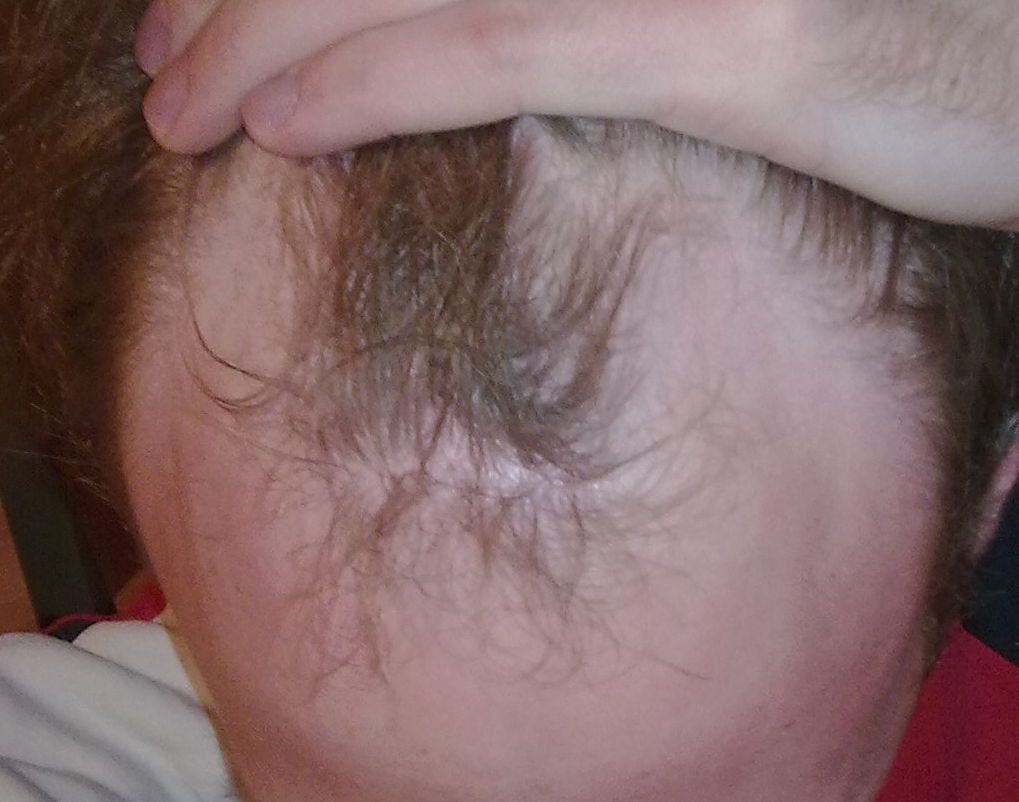 4. Die Gefahr von Shockloss ist ebenfalls vorhanden, die noch vorhandenen Haare im vorderen Bereich sind schon DHT geschädigt. Nach einer HT könnten auch diese schnell einen Abgang machen.