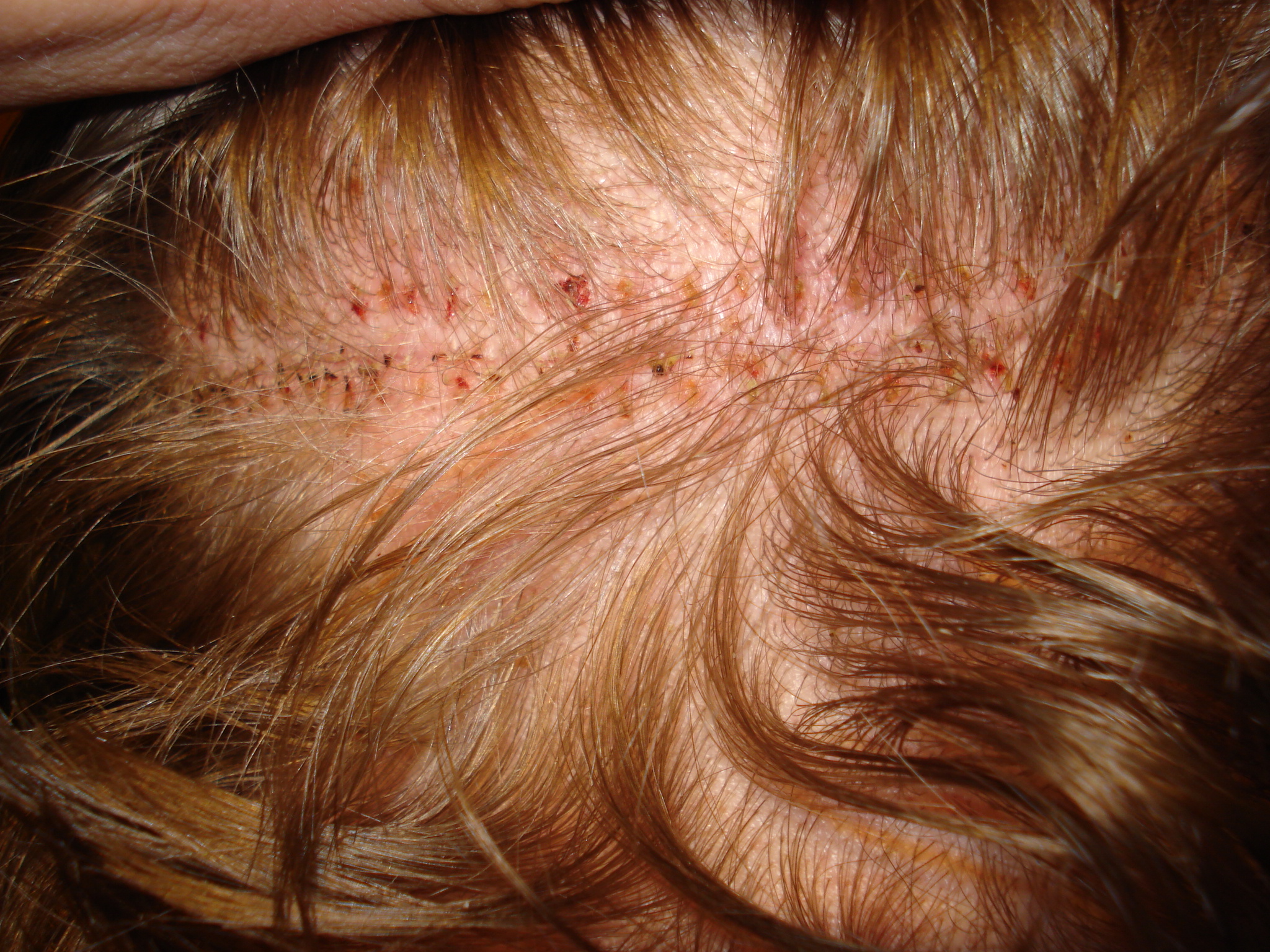 Also ich denke ich kann mit der Narbe sehr zufrieden sein wenn man überlegt das die erst 10 Tage alt ist sieht das schon finde ich gut aus .Da meine Haare so kreuz und quer liegen und durch den Blitz sieht das ein bisschen gerupft aus .