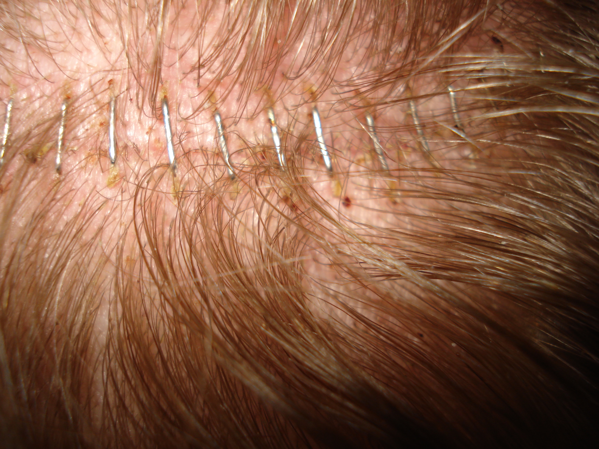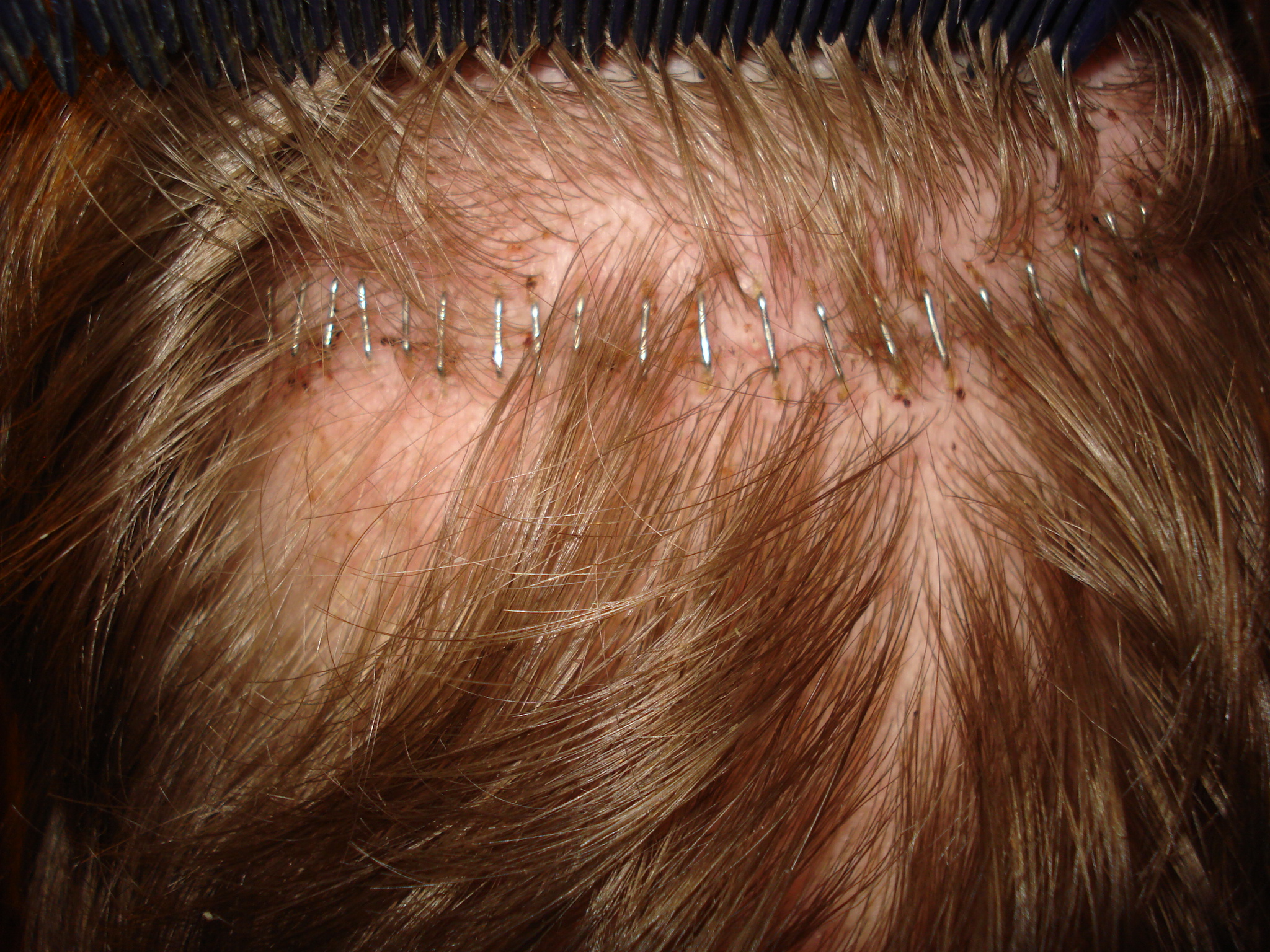 Also ich denke ich kann mit der Narbe sehr zufrieden sein wenn man überlegt das die erst 10 Tage alt ist sieht das schon finde ich gut aus .Da meine Haare so kreuz und quer liegen und durch den Blitz sieht das ein bisschen gerupft aus .