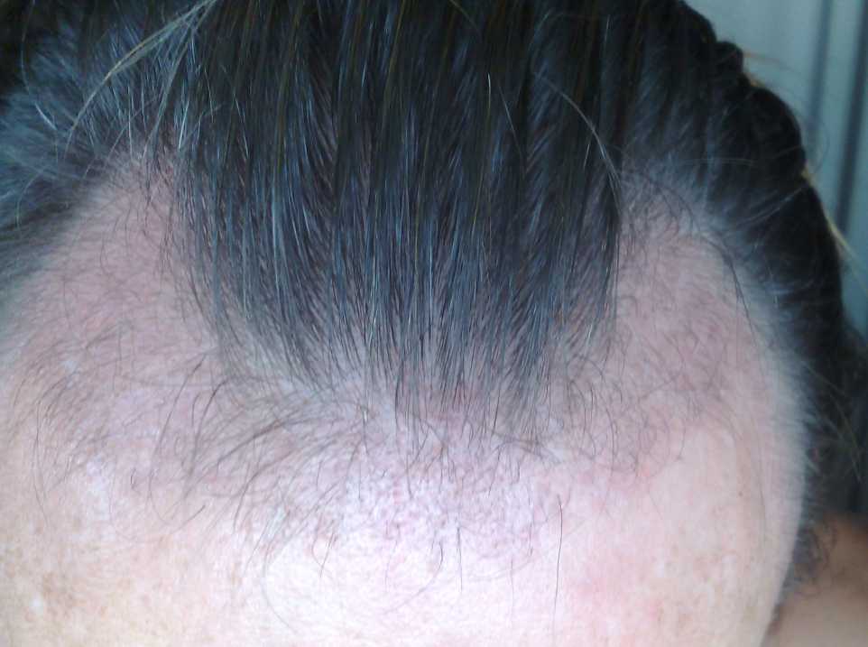 Da ich die Haare normalerweise nach vorne kaemme (nicht so wie auf den Bilder) fallen die neuen Haare auch noch nicht sonderlich auf. Allerdings hoffe ich natuerlich, dass diese bald ihren Dienst tun und das Ganze dichter und voluminoeser erscheinen lassen