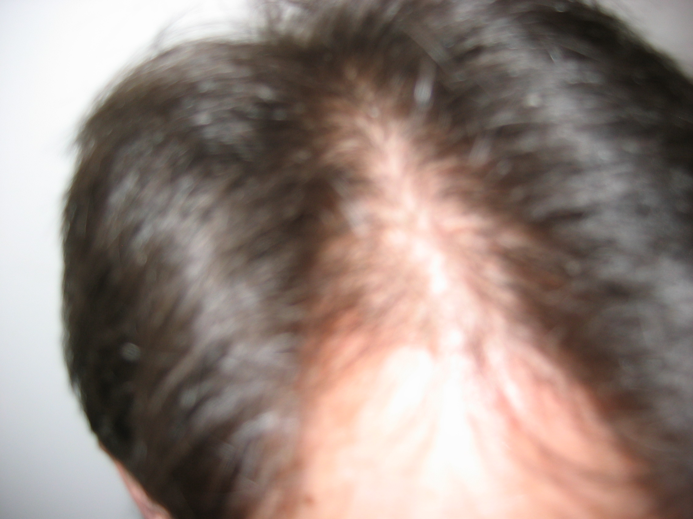 Noch was: auf Foto Nr. 3 sieht es aus als wenn ich nur leichte Geheimratsecken hätte. Ich hab es reingestellt, damit man den Unterschied zu einer schlechten Perspektive+ schlechtem Licht sieht, da es in Wirklichkeit eher wie Foto 1&2 aussieht.