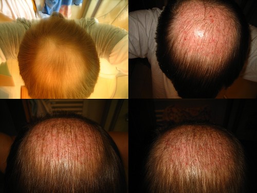 Problematisch bei meinem Fall war/ist, dass ich bereits einen Fehlversuch im Jahr 2001 bei Moser hatte. Das was mir da verpflanzt wurde ist das, was auf dem vorher Bild auf der Platte noch sprießt (wenn man das so sagen kann…). Weiterhin habe ich extrem dünnes Haar, daher auch mein Pseudonym, und zu guter letzt ist meine Dichte auch nicht besonders hoch. Alles in allem nicht gerade die besten Voraussetzungen, aber meiner Meinung nach hat Melplast da ganze Arbeit geleistet und immerhin besagte 2640 Grafts rausgeholt. Ohne die erste OP wären es sicher mehr gewesen. So ging das ganze in den ersten drei Monaten dann langsam los (0 Monate - 1 Monat - 2 Monate - 3 Monate):