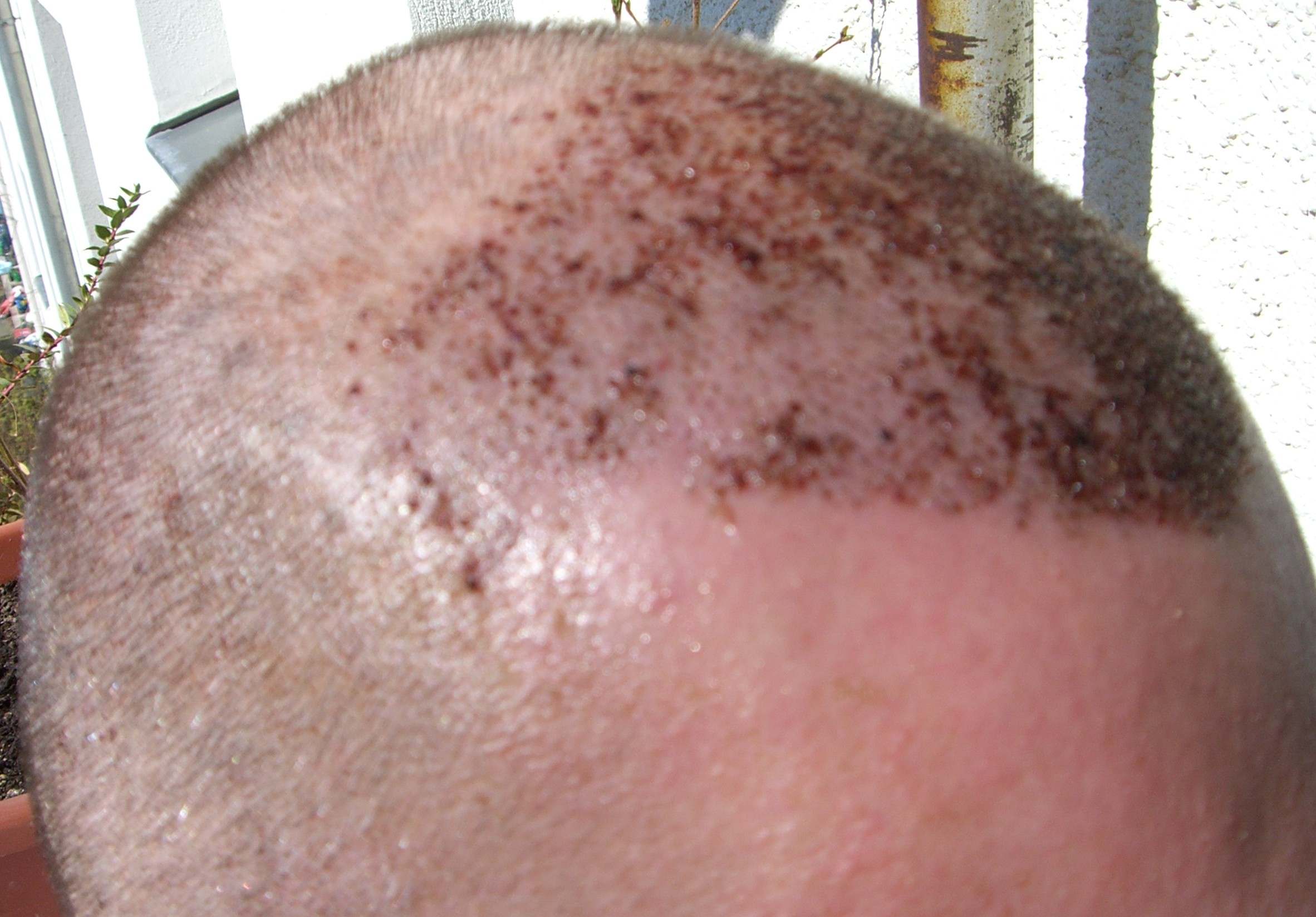 An dem Tag hat Dr. Keser 500 Grafts verpflanzt. Am zweiten Tag waren es 750. Der dritte Tag war frei. Am vierten Tag waren es wieder 750 und am fünften und letzten Tag haben 500 Grafts die Wohngegend gewechselt.